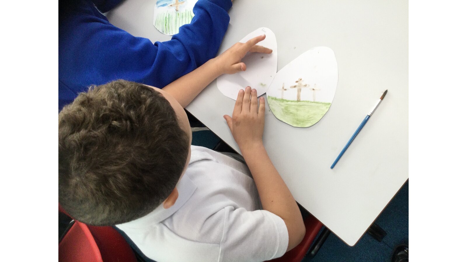 We hope you have a lovely Easter! Here are some photos of us making your Easter cards. We discussed the symbolism on the card, the crucifix to remember the sacrifice Jesus made for us all and the egg shape and flowers to remind us of new life.