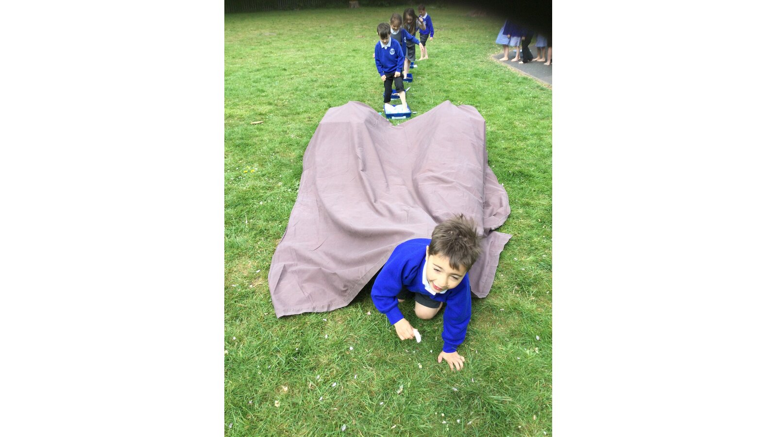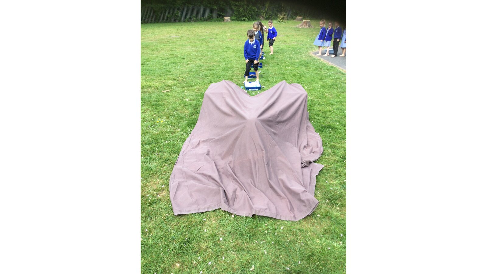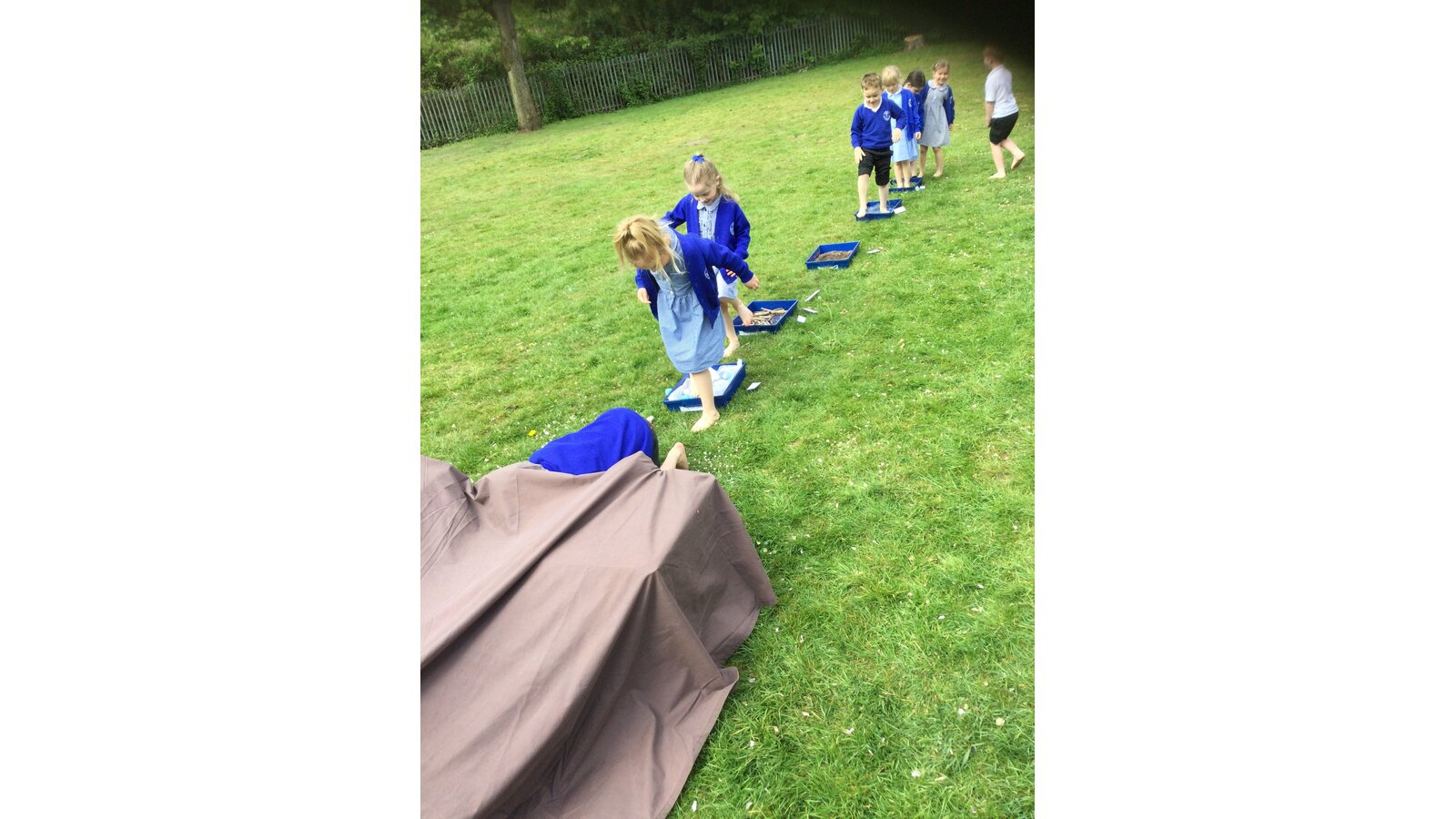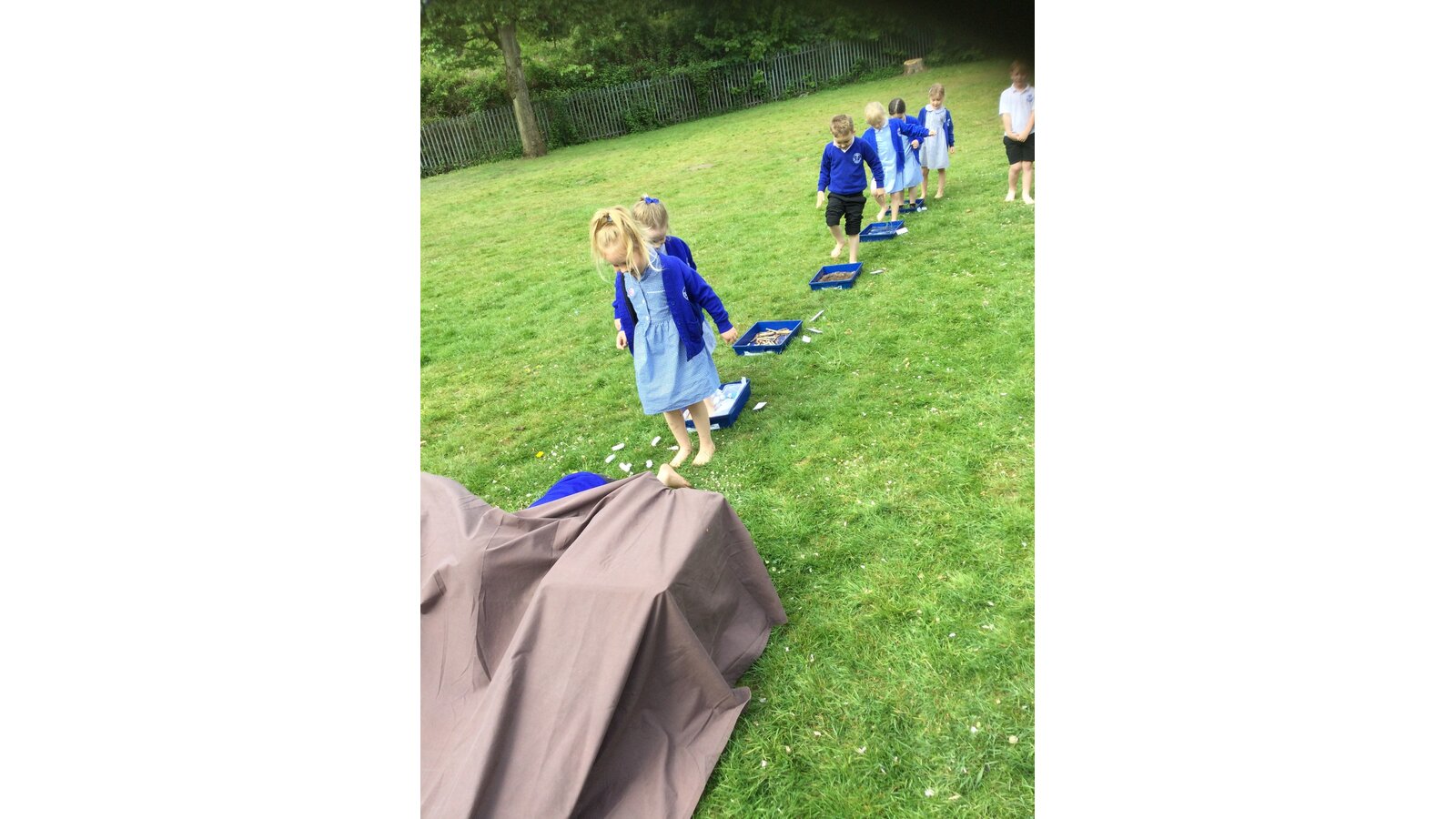 Class 1 went on a barefoot walk through the pages of the story We're Going on a Bear Hunt.