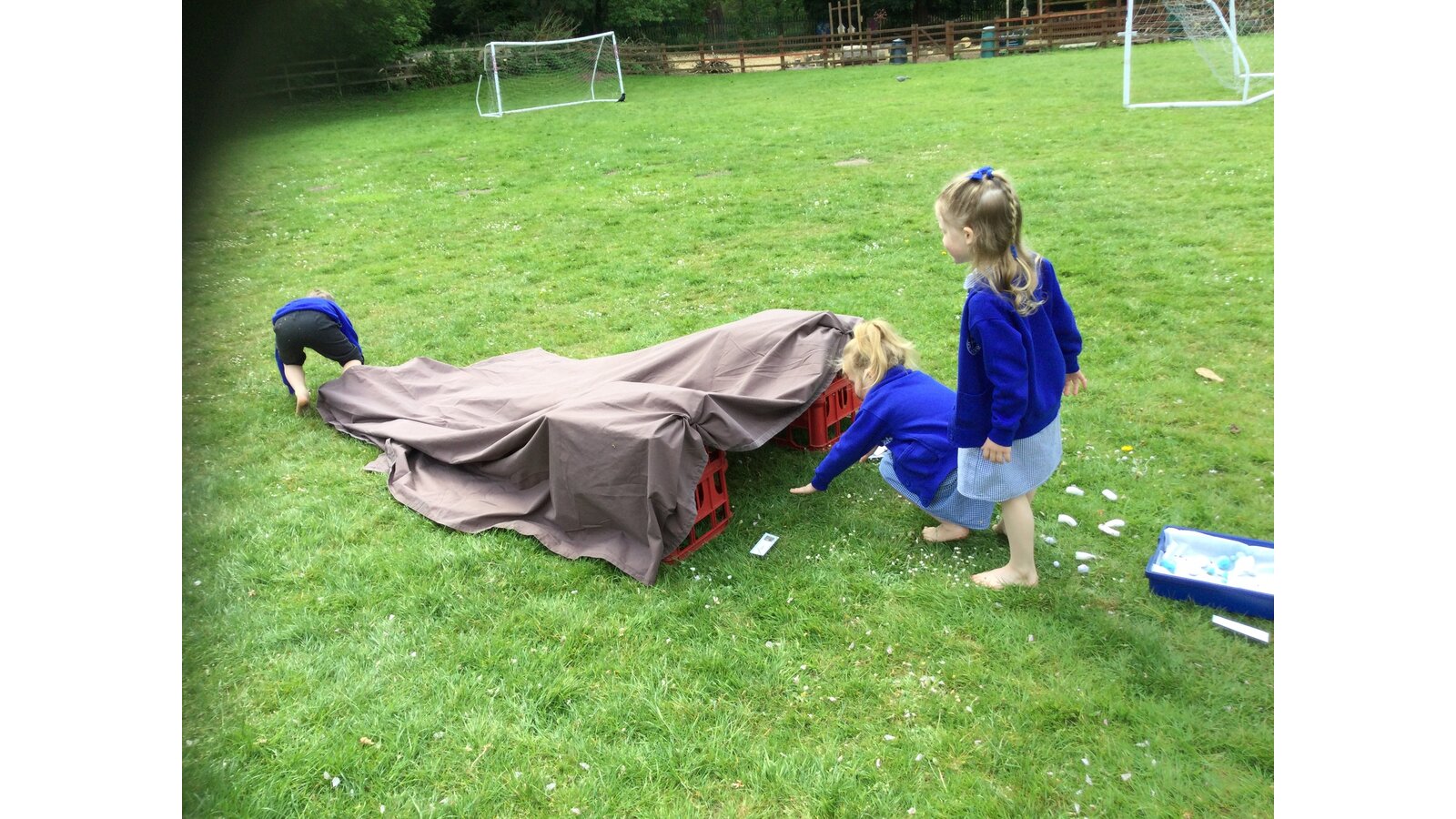 We have been reading and acting out the story this week and we took our story outside, took our shoes and socks off and felt the different textures underneath our toes - long wavy grass, deep cold river, thick oozy mud, big dark forest and a swirling whirling snowstorm. At the end we came to a narrow and gloomy cave that we crawled through!