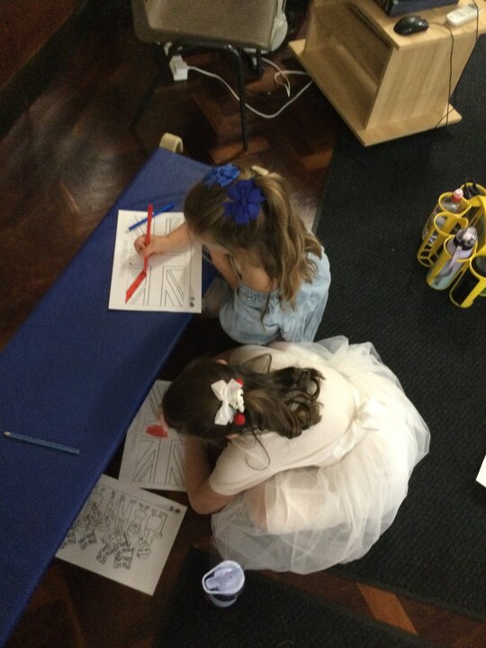 We all wore something red, white, or blue, made Union Jack pinwheels and spent time with our friends playing games in the hall.