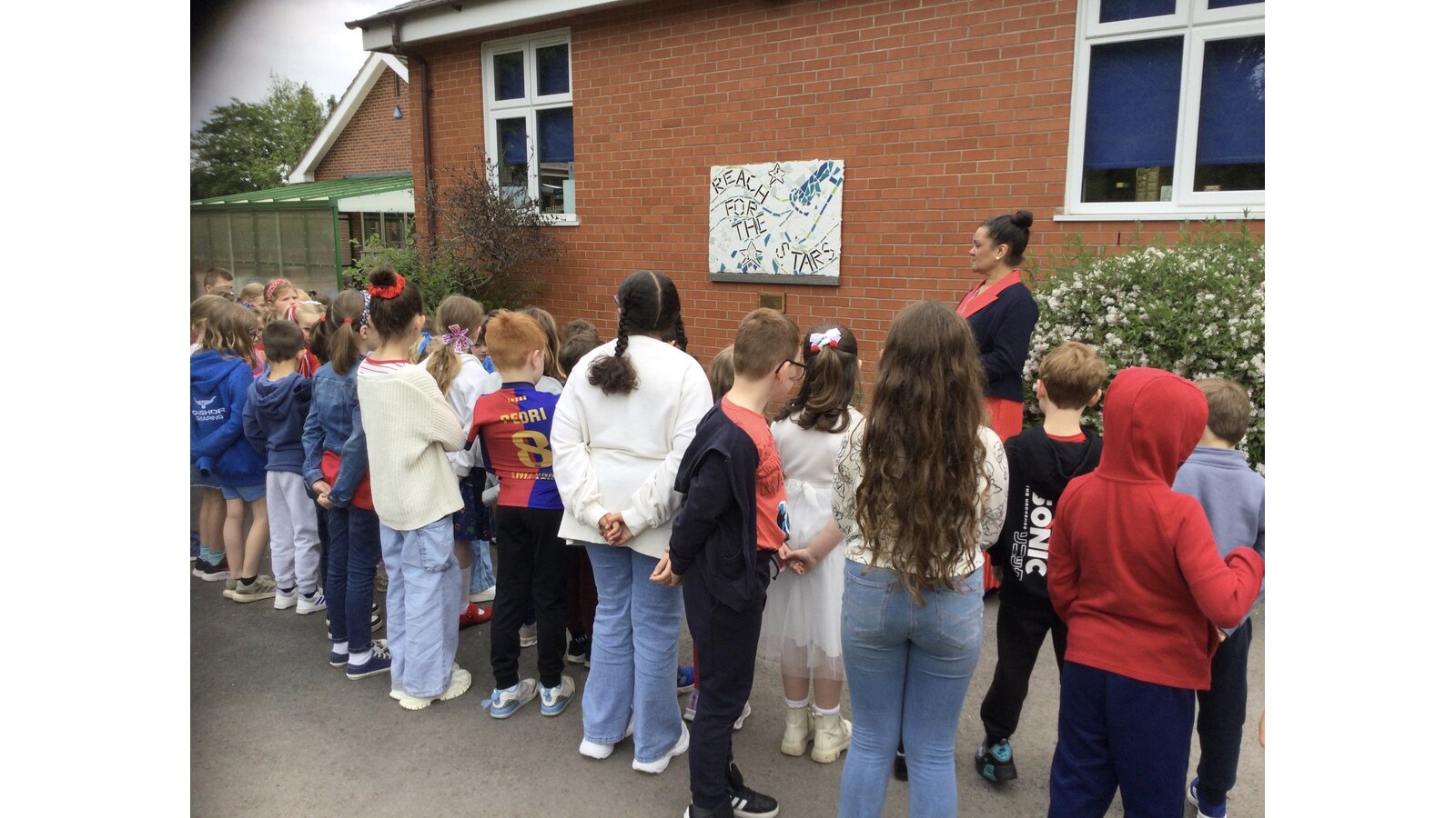Today we came to school dressed in red, white and blue for Victory in Europe day. We gathered as a school at our Memorial garden for a one minutes silence at noon, followed by a special prayer.