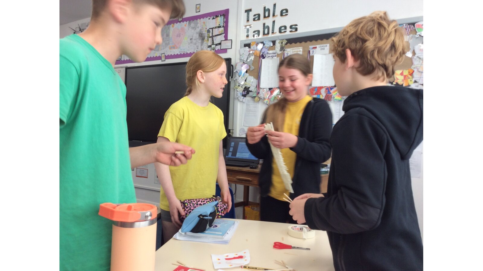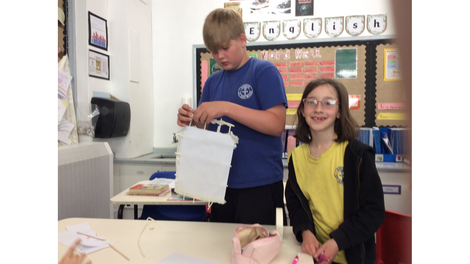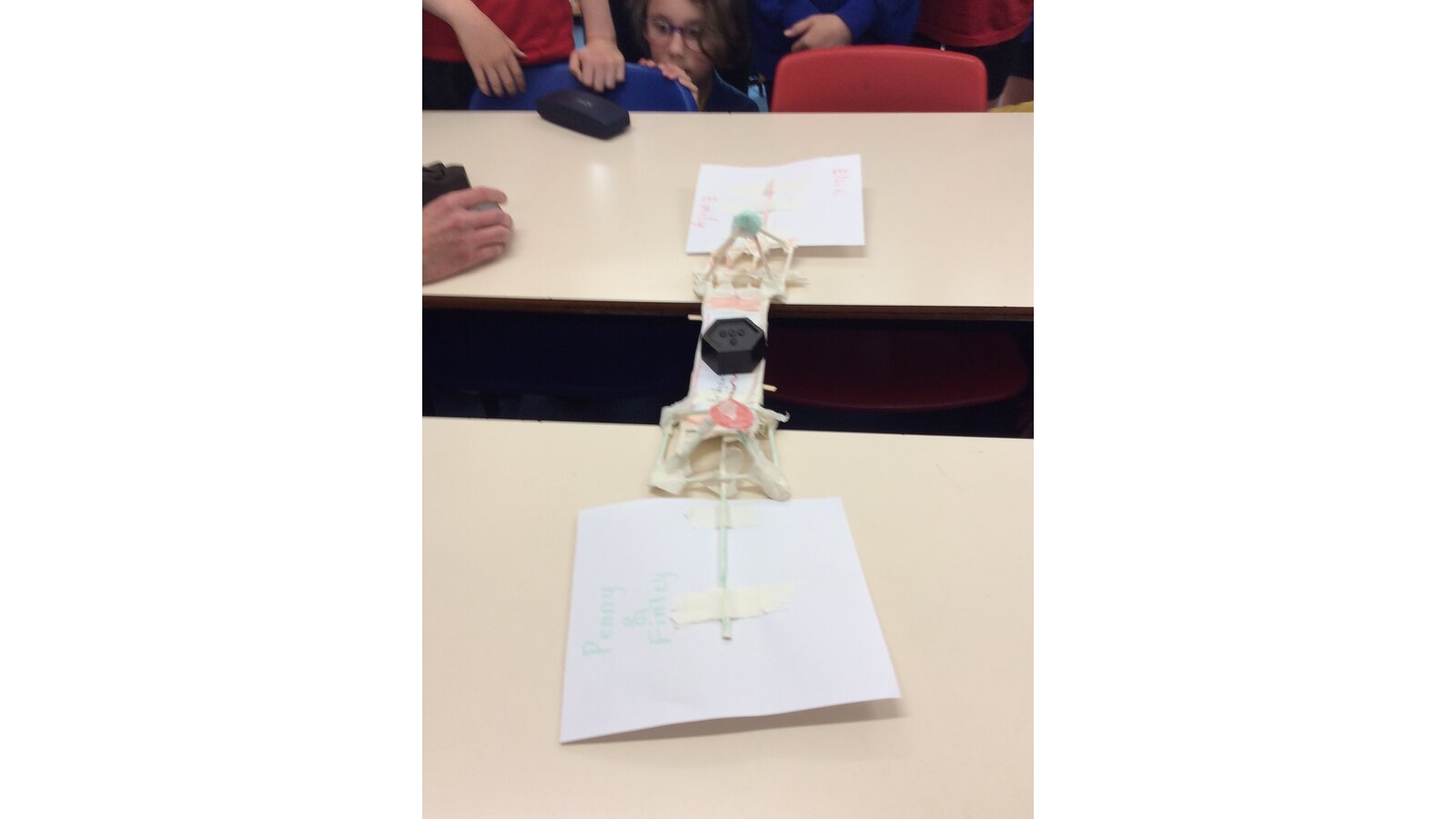 Today, we designed and made bridges with th goal of taking as much weight as possible. We had lots of fun working in teams to build our bridges.