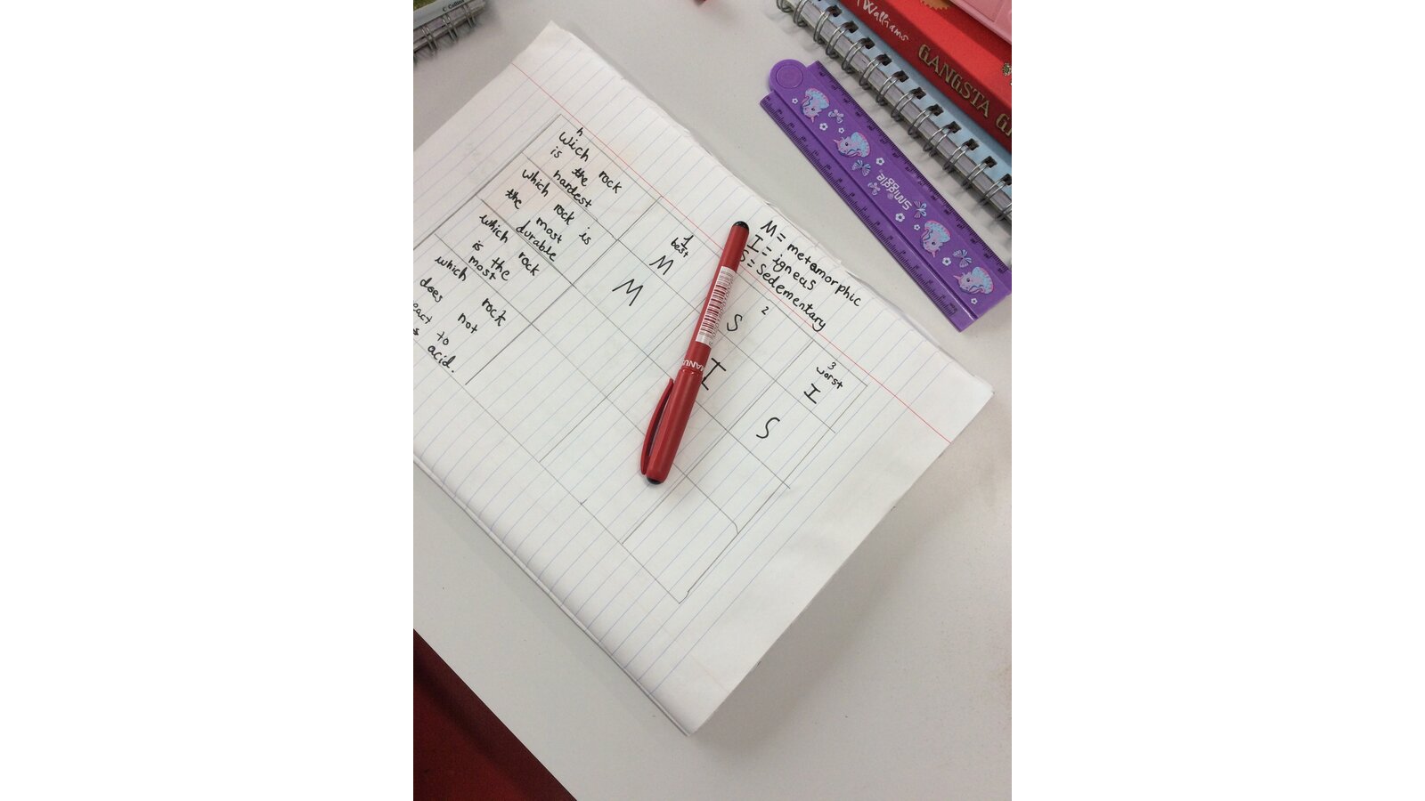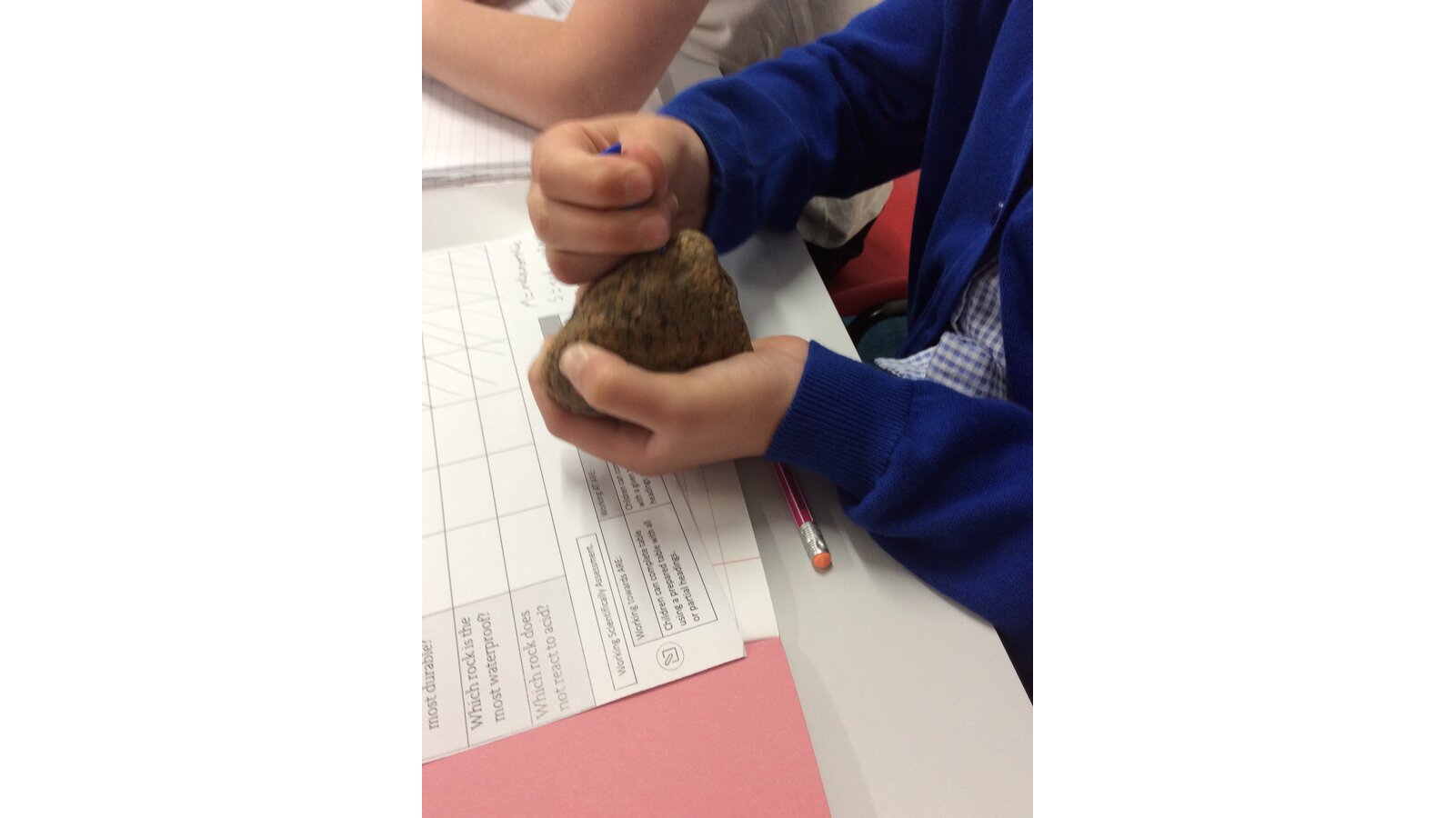Today we have been taught by a member of our class who created a poster to explain all about igneous, metamorphic and sedimentary rocks. We then tested them to find out how they reacted to water and white vinegar. We also tested their durability and how hard they were by using golf tees to scratch them and sandpaper rubbed across them. We then recorded our results in a comparative table. Great Science work Class 3!