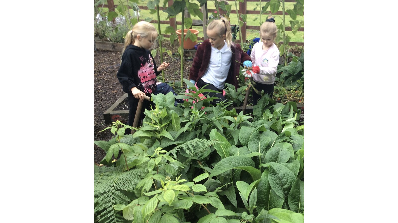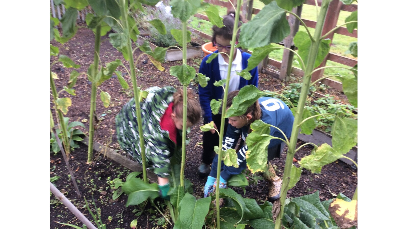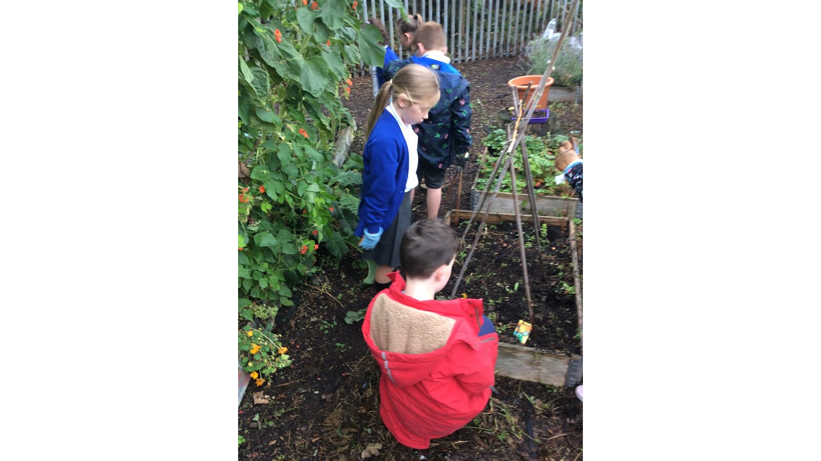 Between the heavy rain showers, Class 3 have worked hard to gather the last of the vegetables (mainly beans and tomatoes) and pick the many weeds from the beds so they are clear for Winter. Great teamwork children!