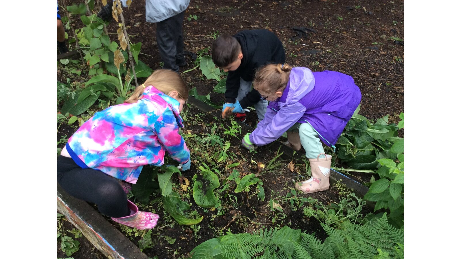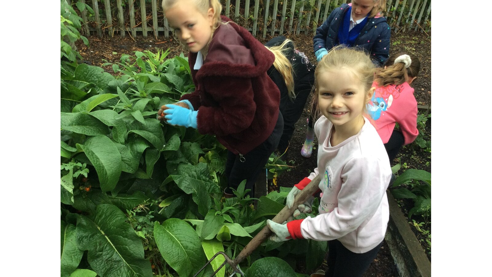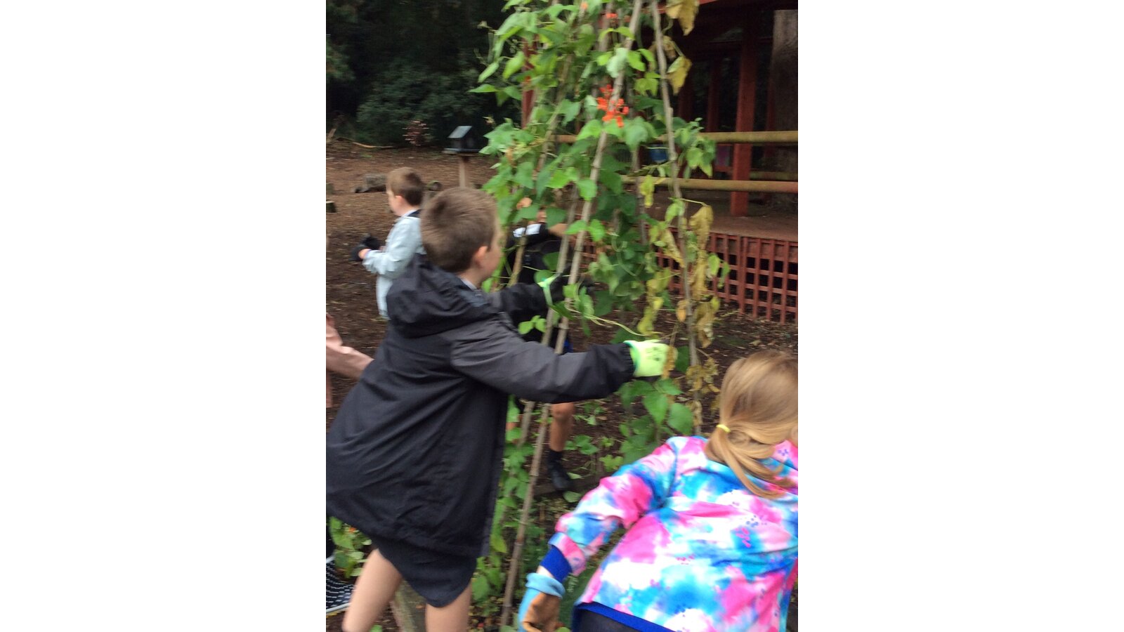 Between the heavy rain showers, Class 3 have worked hard to gather the last of the vegetables (mainly beans and tomatoes) and pick the many weeds from the beds so they are clear for Winter. Great teamwork children!