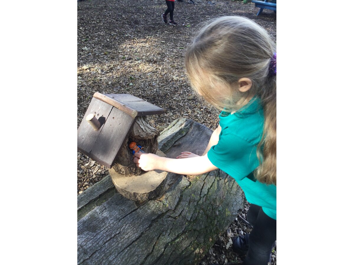 Class 1 explored the outdoors with their mini figures this afternoon. We pretended they were our families and were going on adventures. Some children imagined they were fire fighters and police officers linking to our new topic this week. The children enjoyed creating their homes and playing together with their new friends. Lots of fun was had!