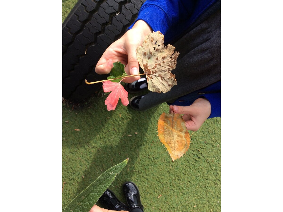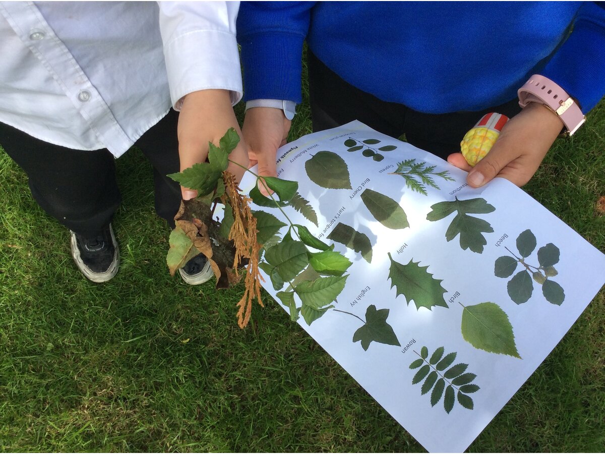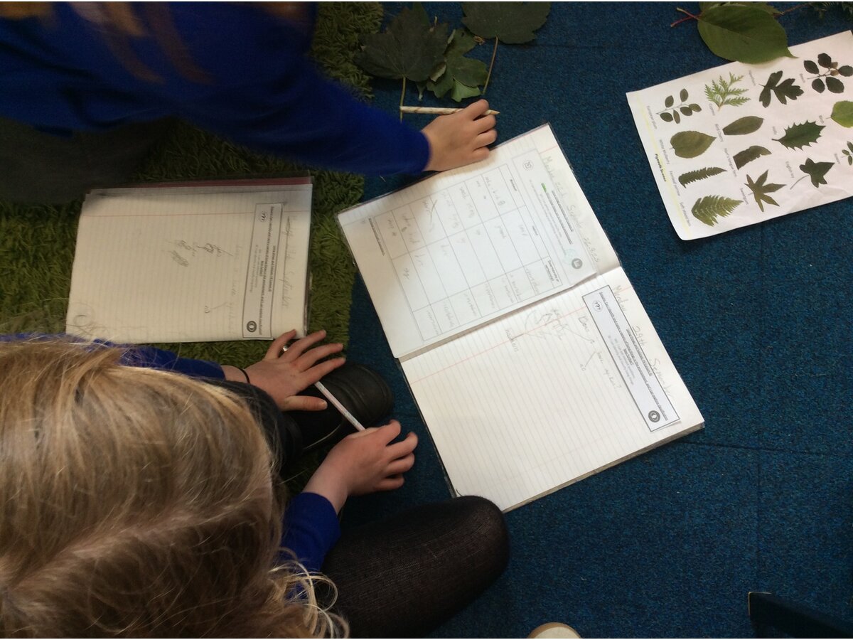 We explored our grounds and collected a range of leaves. We identified which trees they were from and then categorised them with a range of questions.