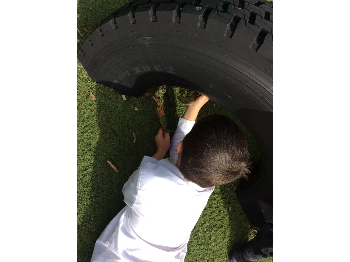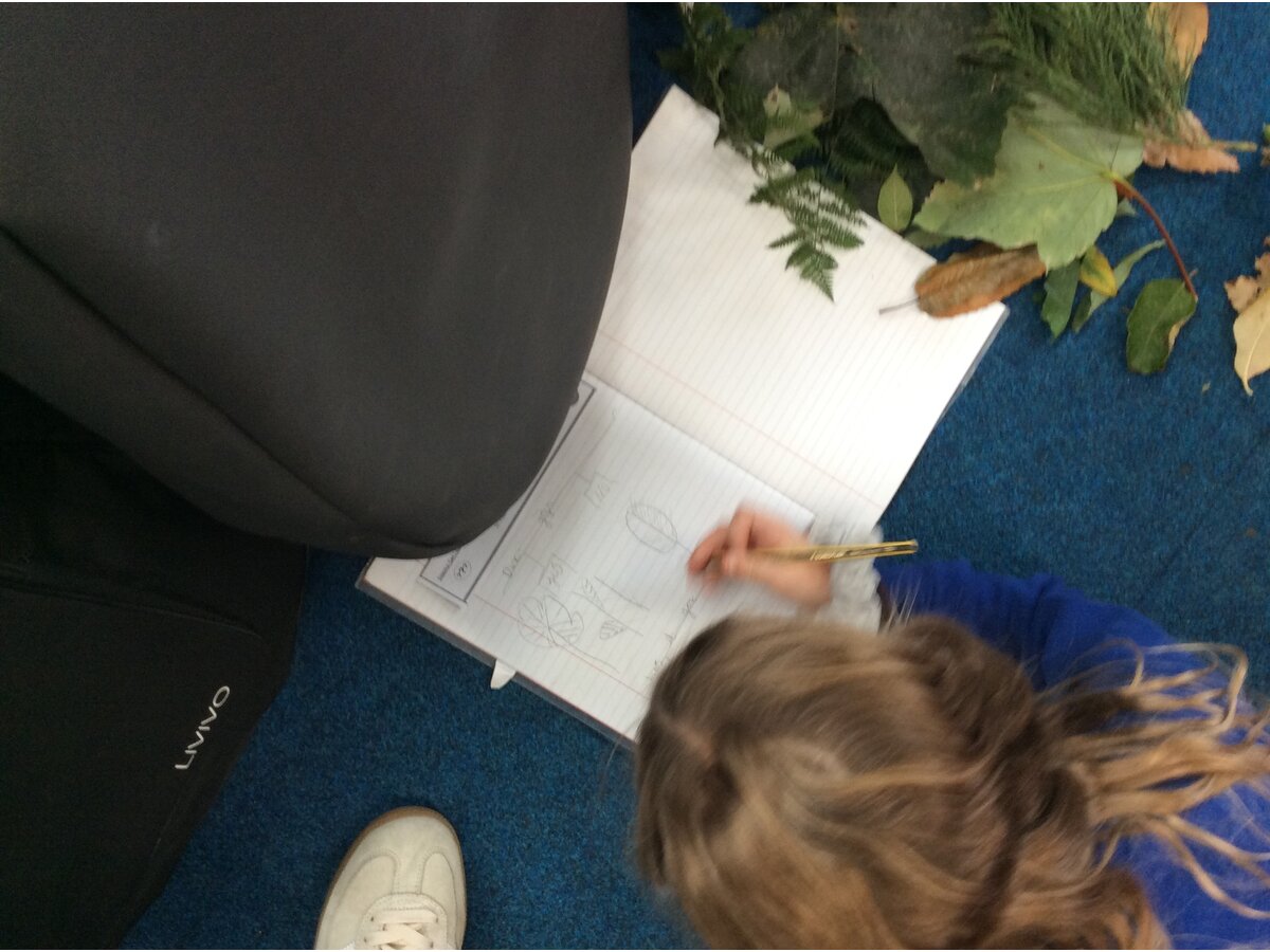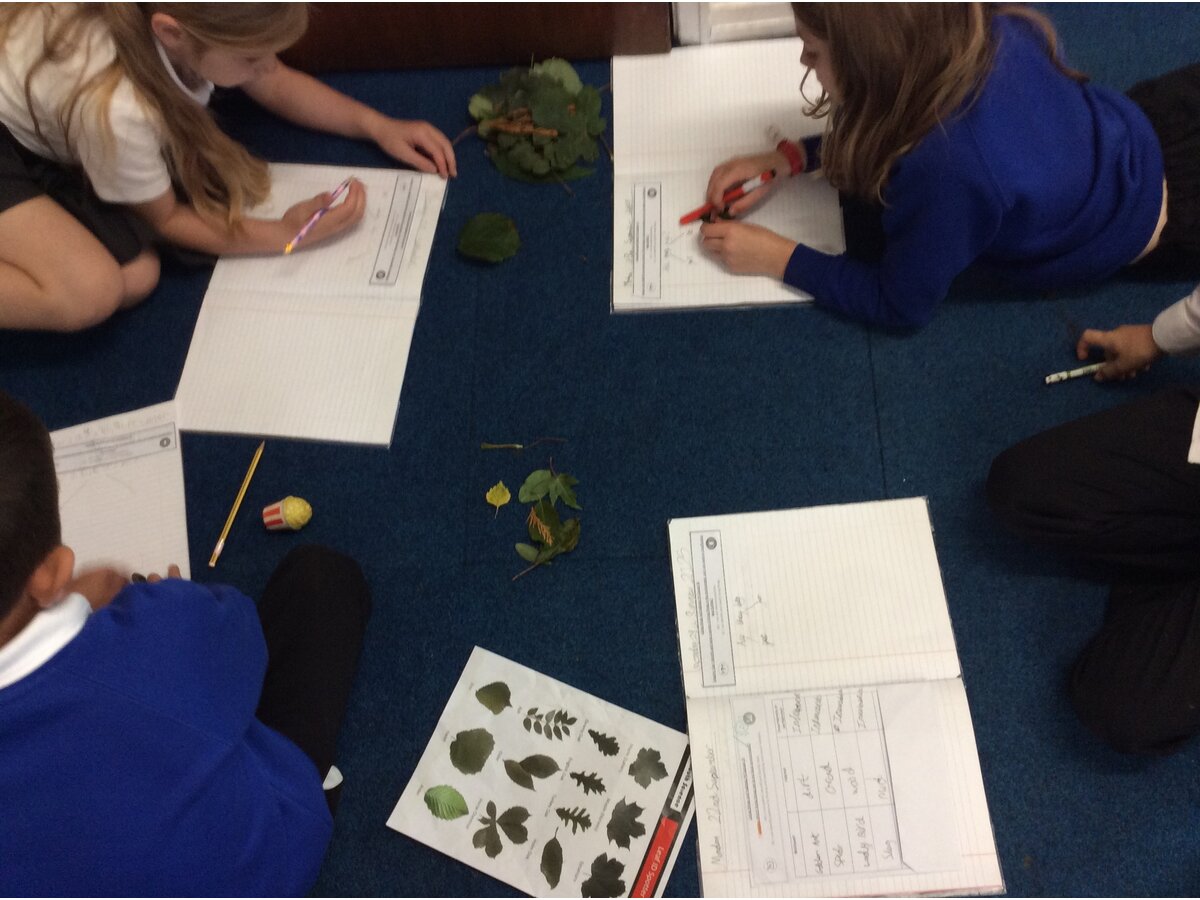 We explored our grounds and collected a range of leaves. We identified which trees they were from and then categorised them with a range of questions.