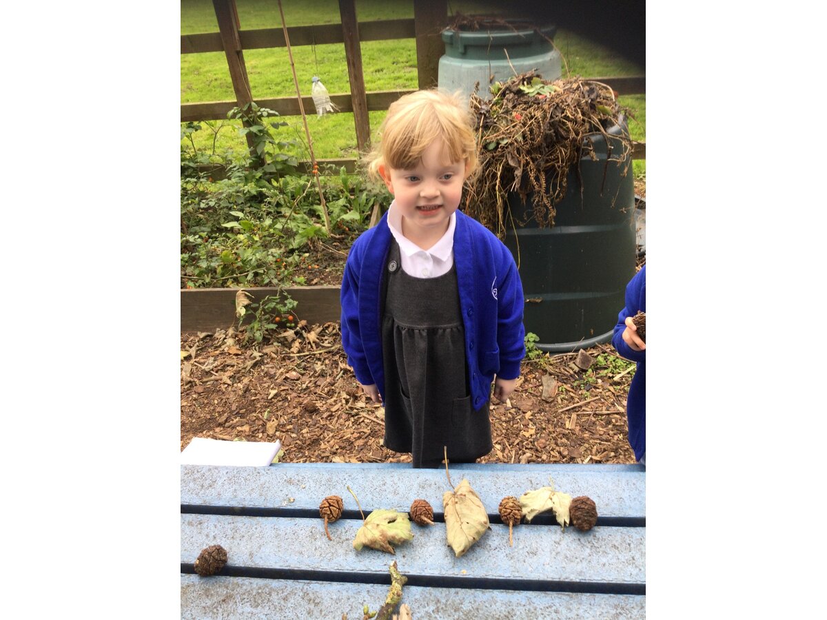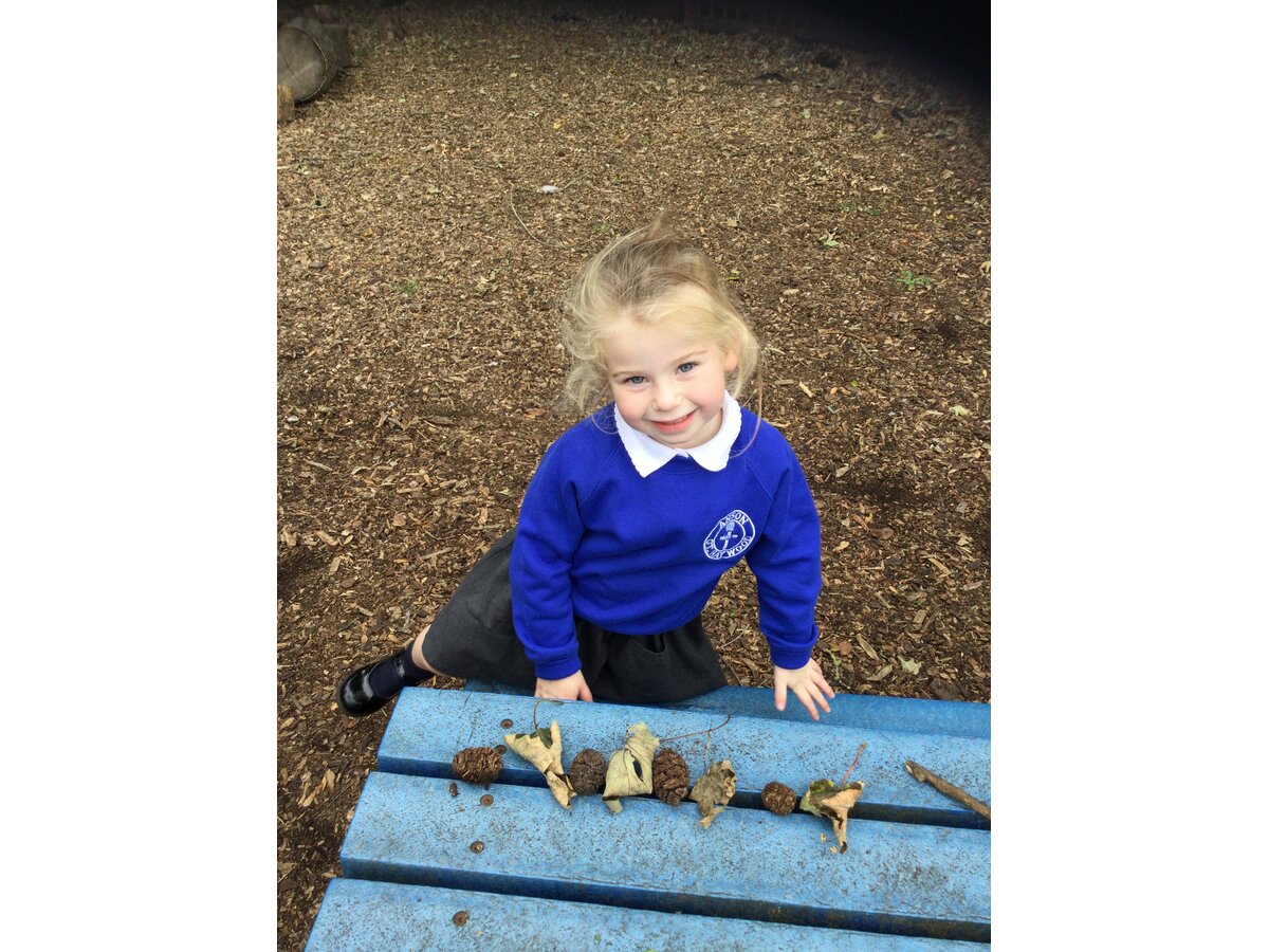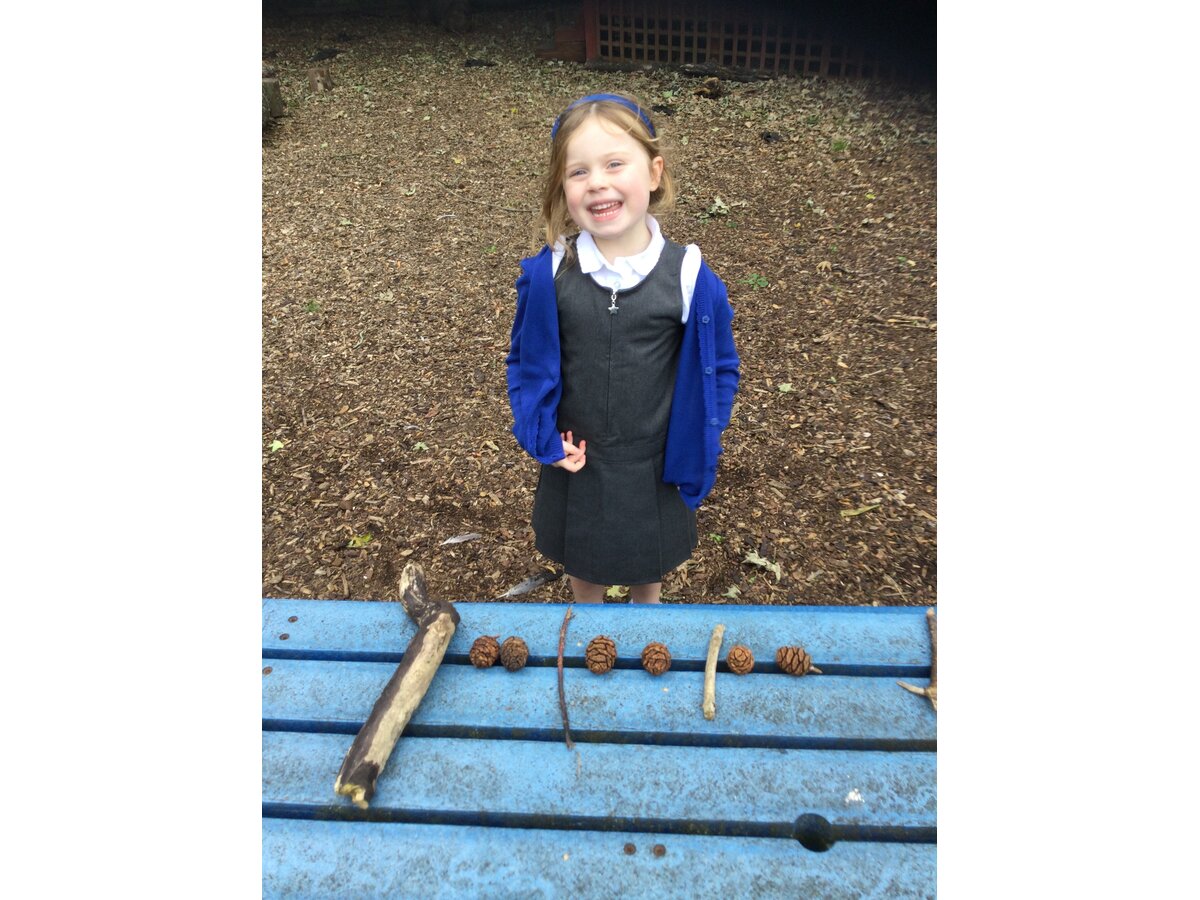 In our maths sessions this week, we are exploring patterns. This afternoon after looking at some repeating patterns together in class, the children were challenged to create their own repeating pattern using natural resources they found in our outdoor classroom.
