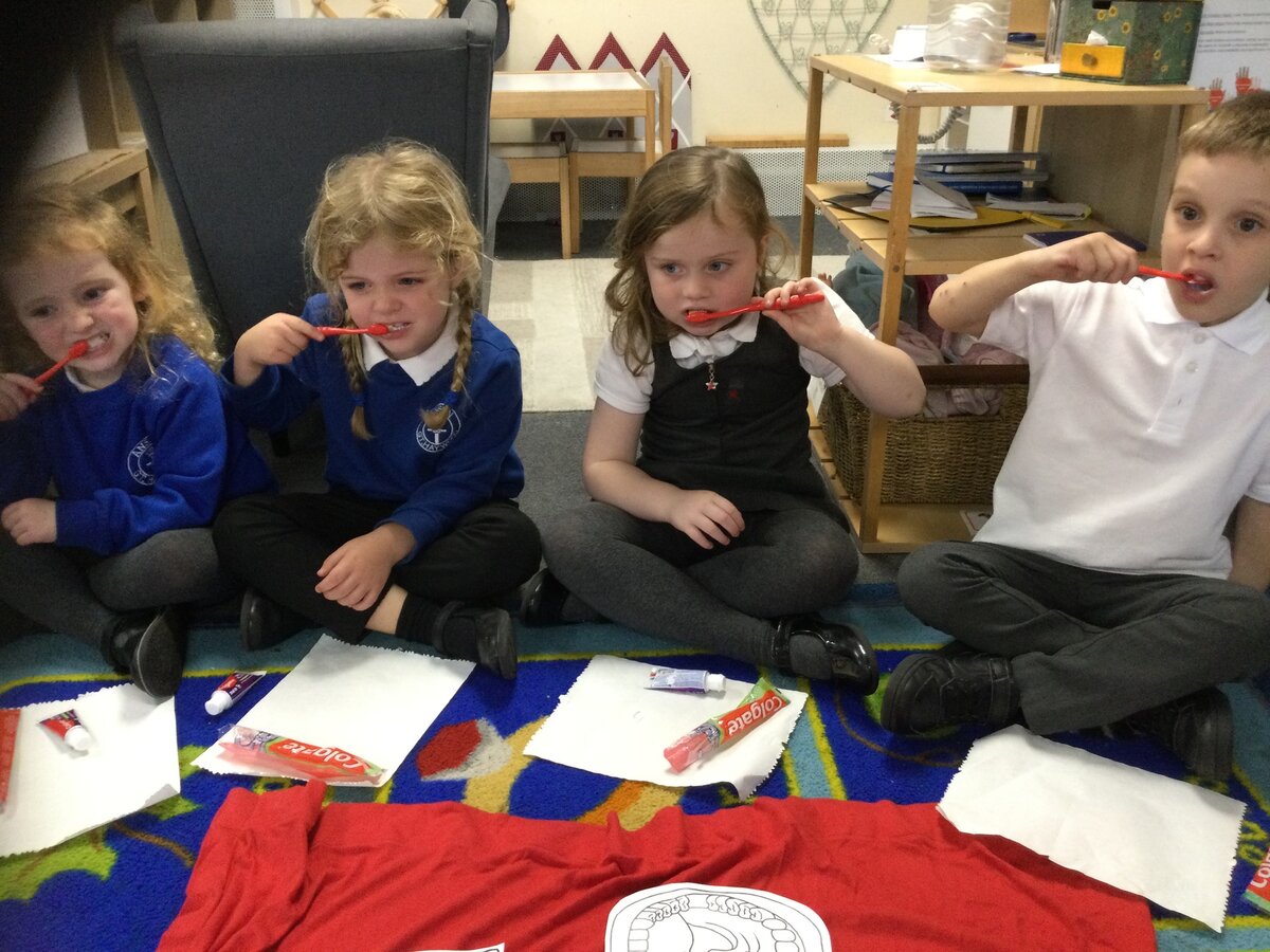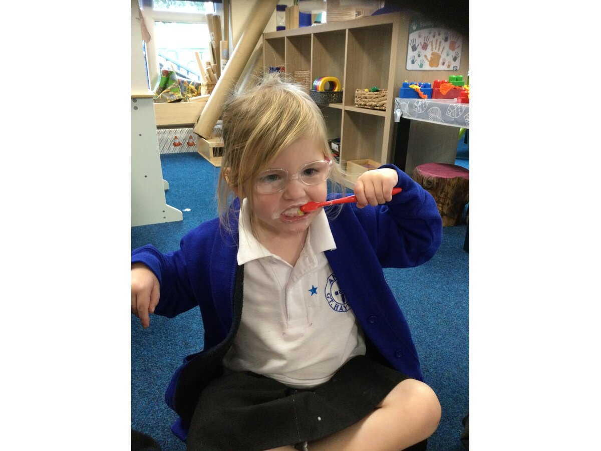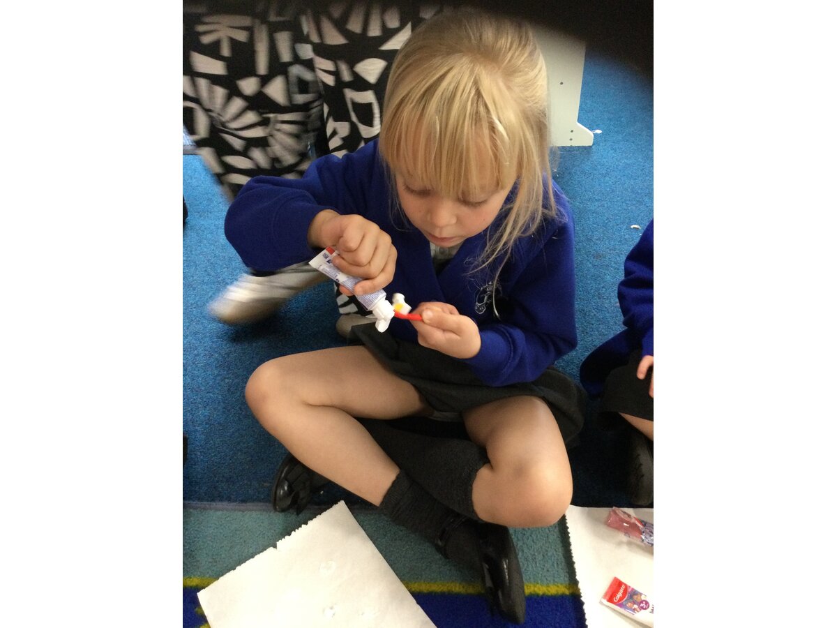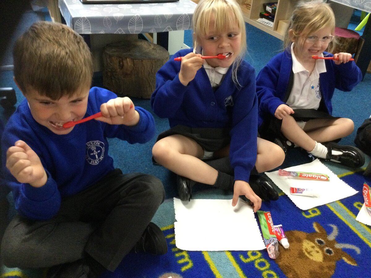A fabulously fun filled afternoon brushing our teeth at school! What fun! Lots of giggles were had and lots of toothpaste covered faces were seen!