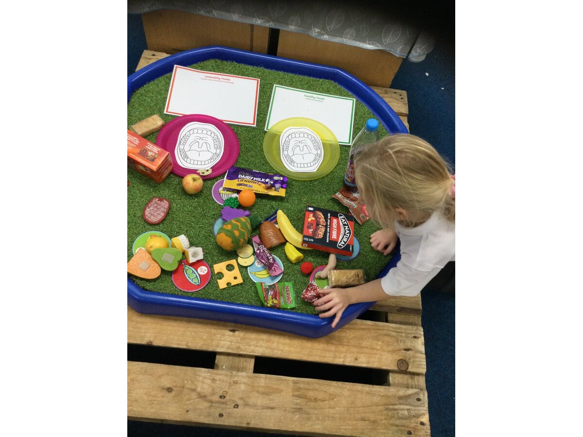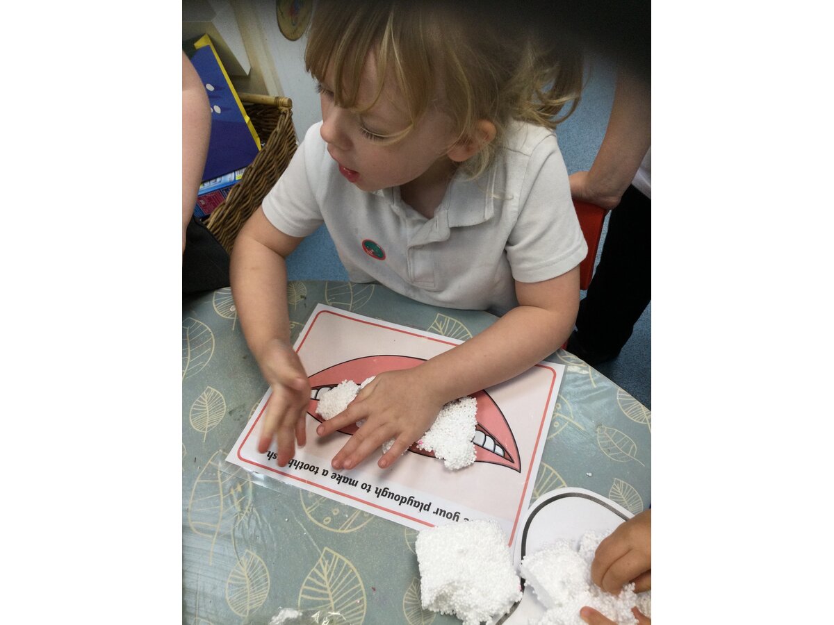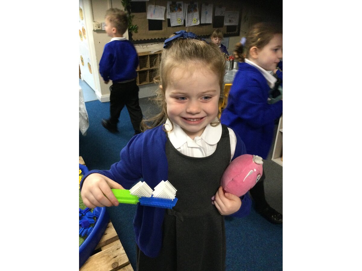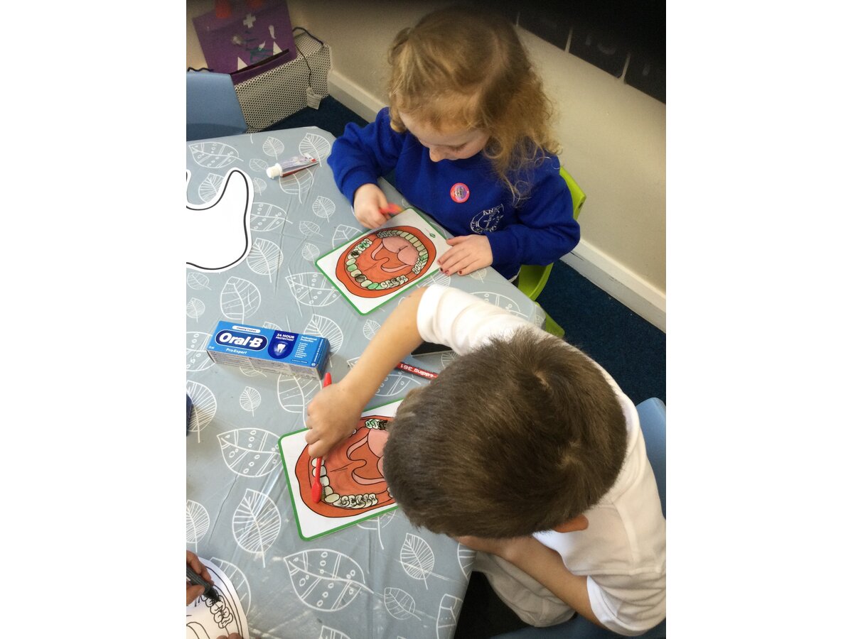 We have practised brushing teeth correctly, choosing healthy foods and drinks for our teeth and have learnt lots of facts about our teeth. We have watched videos of what happens when we visit a dentist and enjoyed teeth brushing songs.