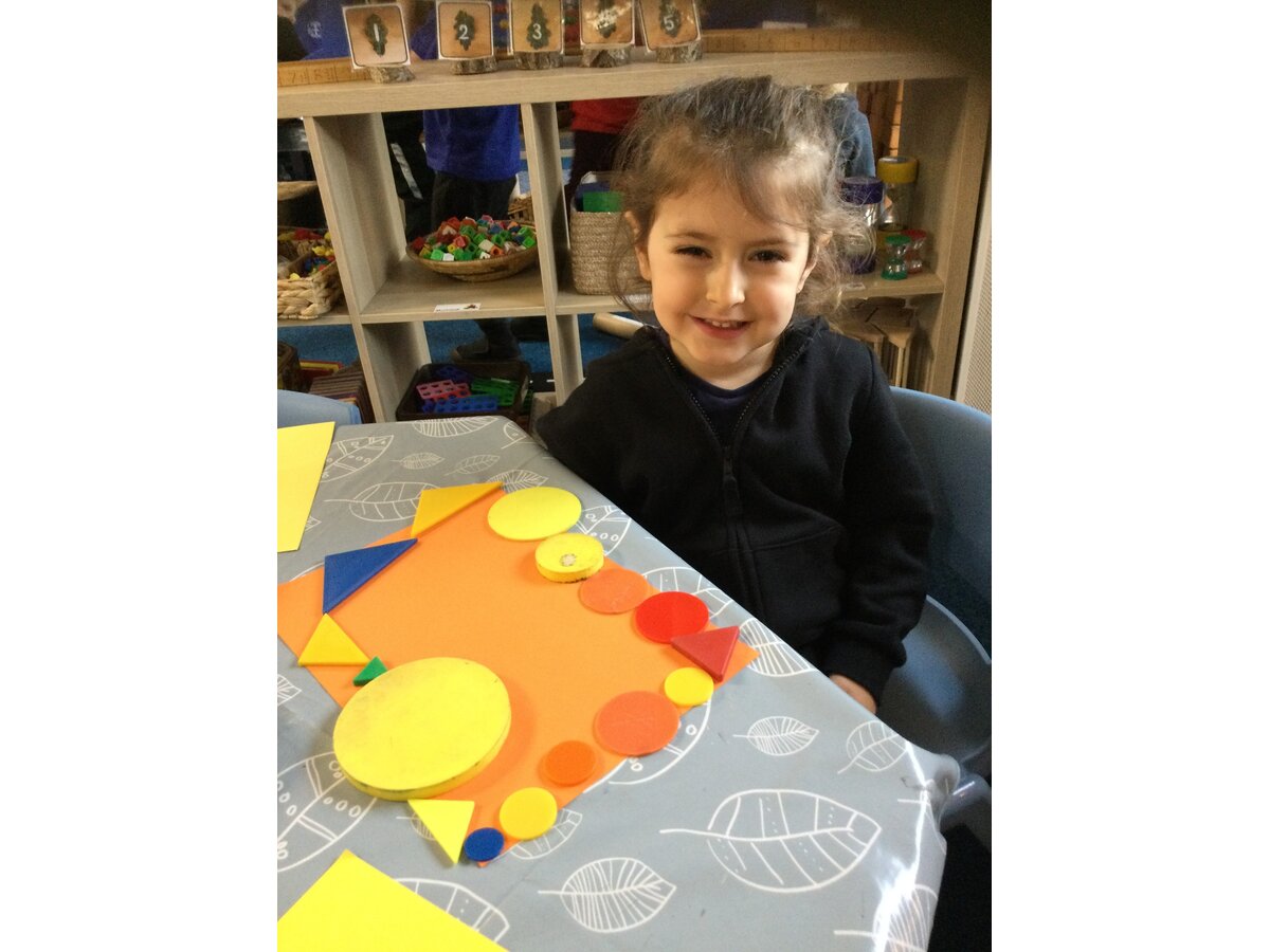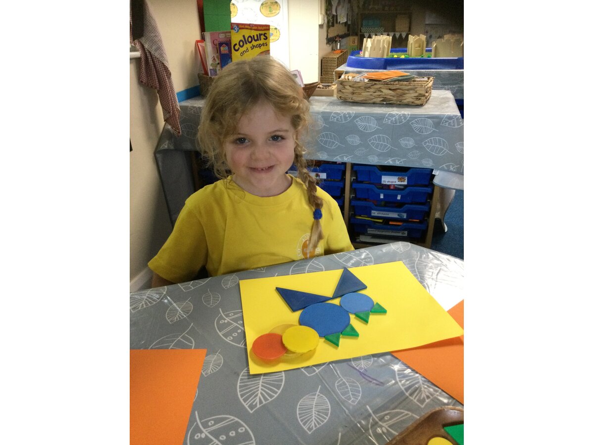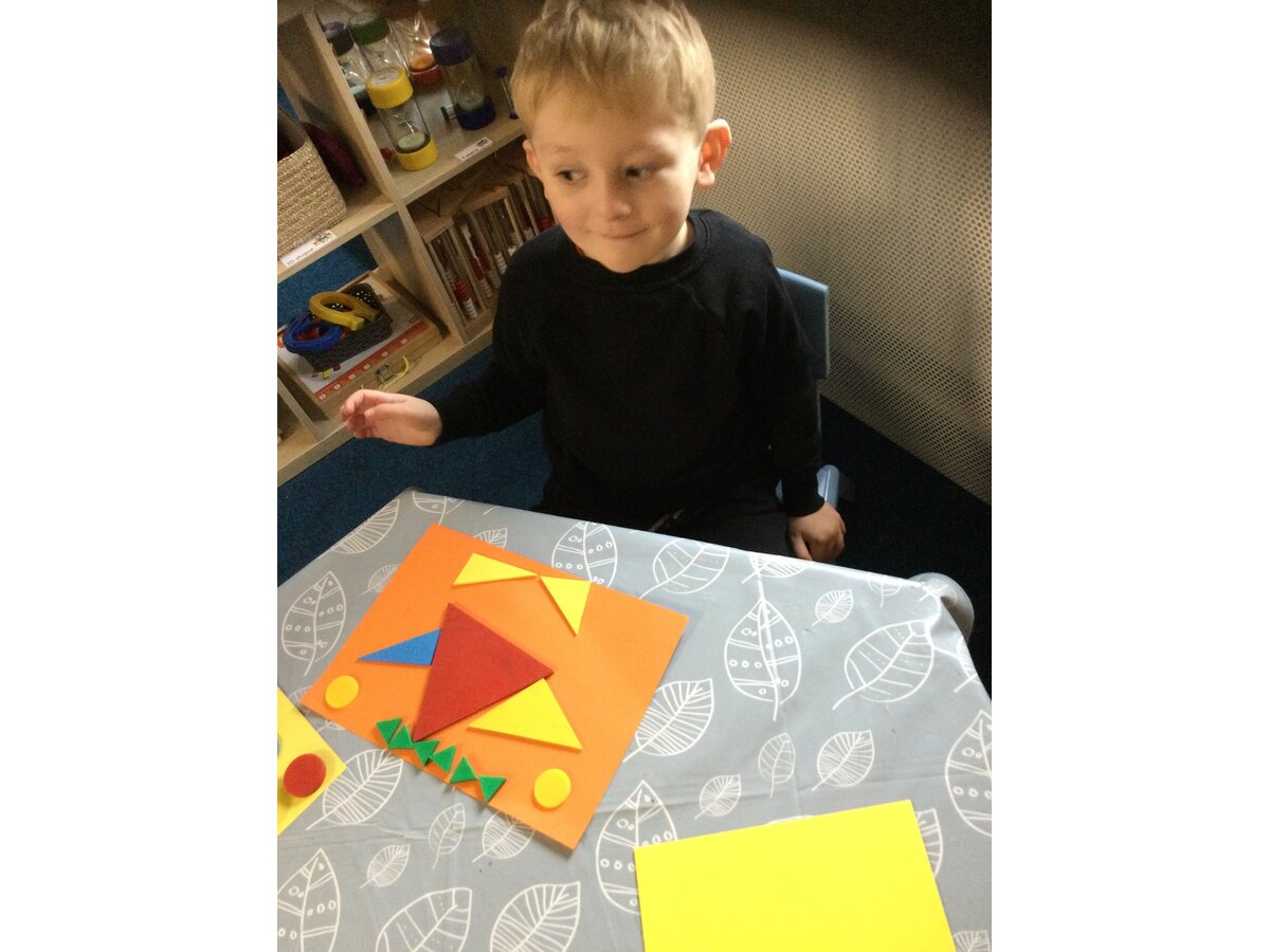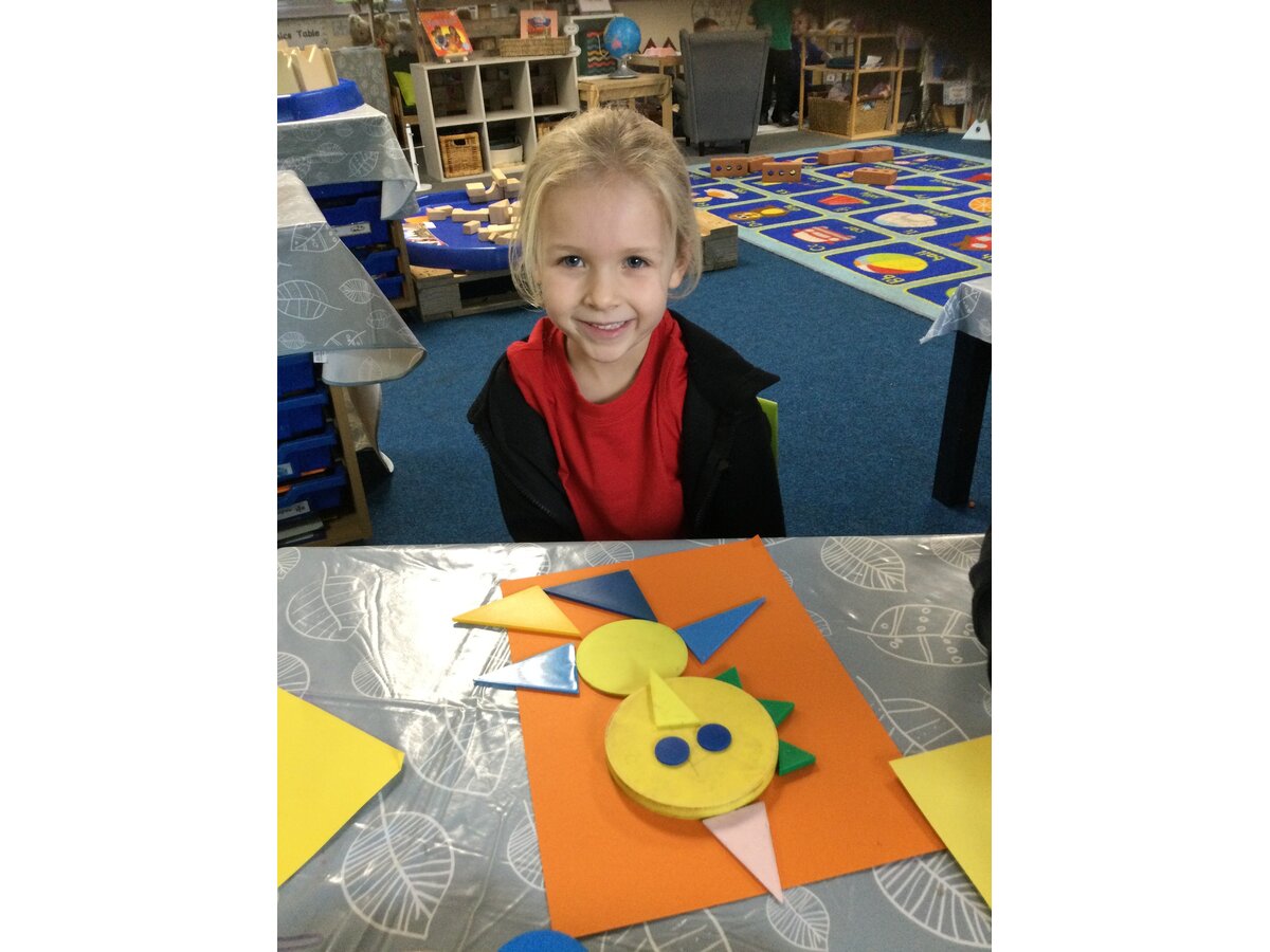 We all had a great time using different circles and triangles to make a shape picture. Can you guess what our fantastic pictures are?