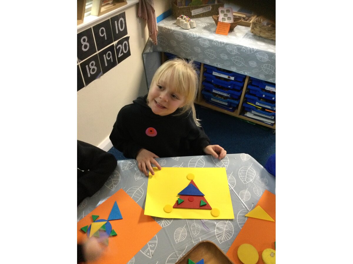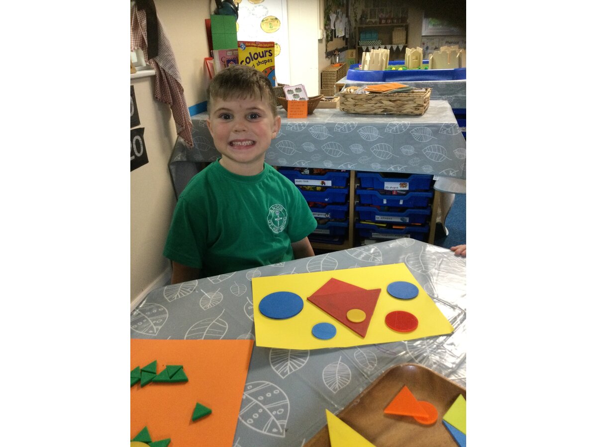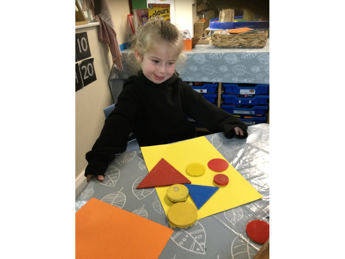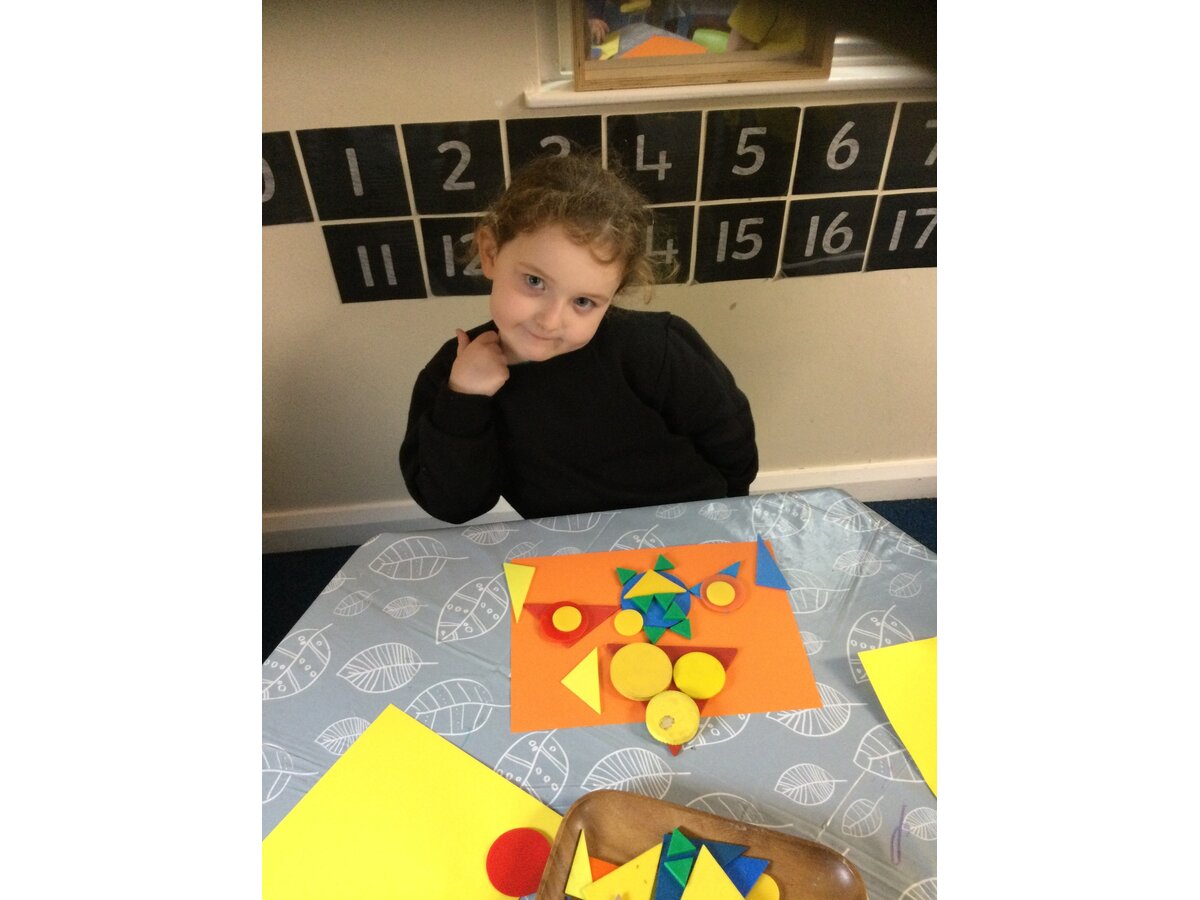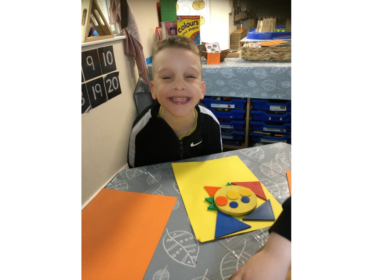 We all had a great time using different circles and triangles to make a shape picture. Can you guess what our fantastic pictures are?