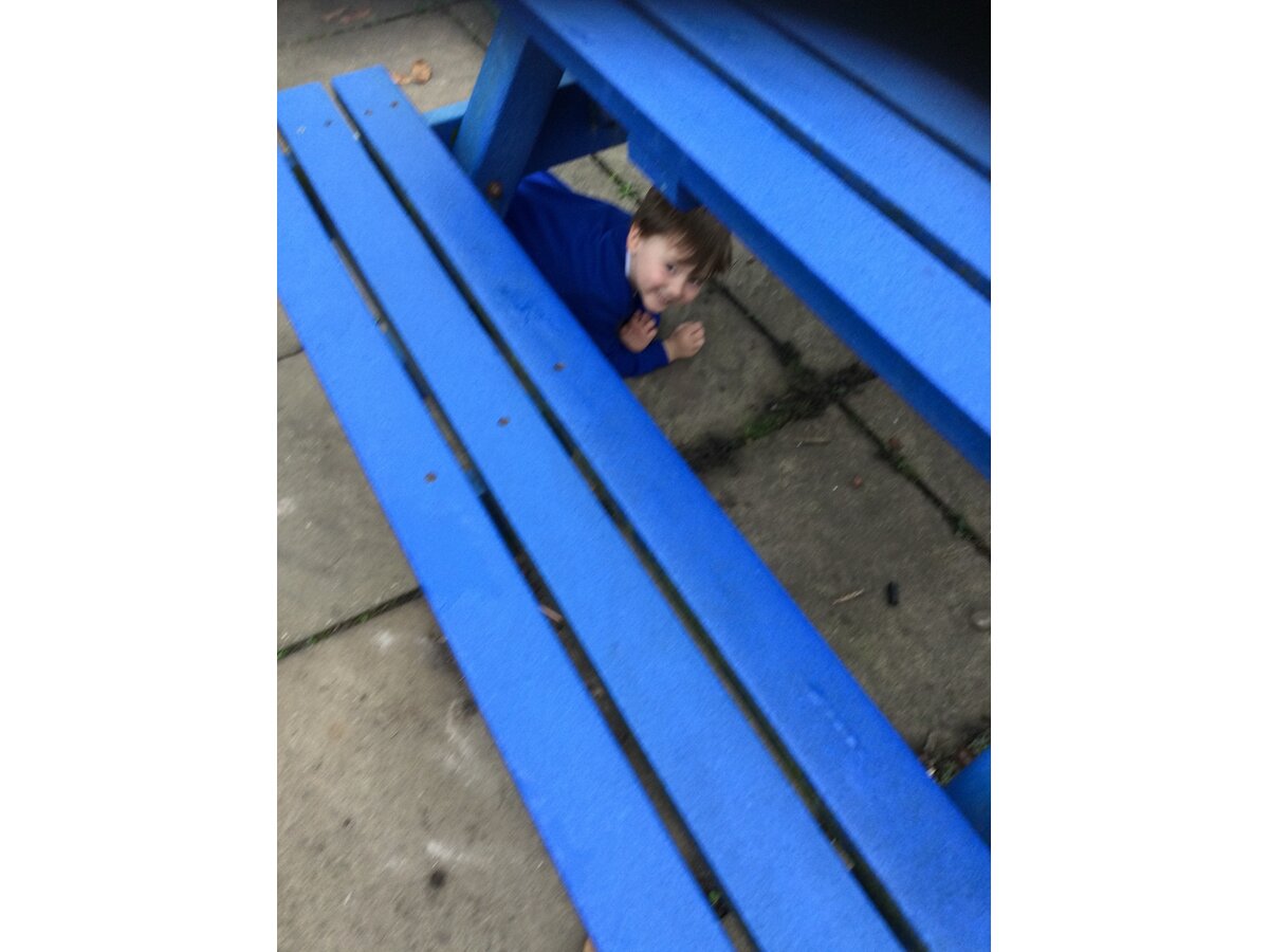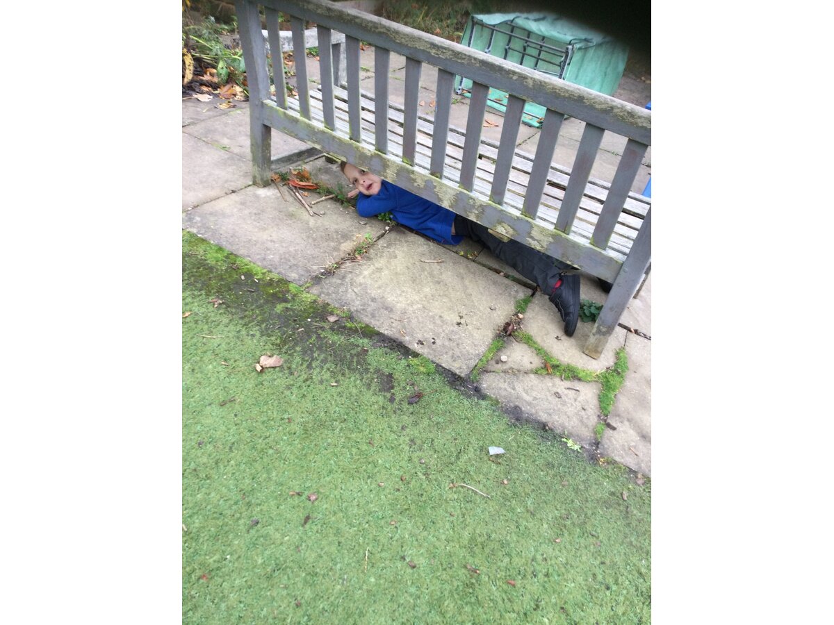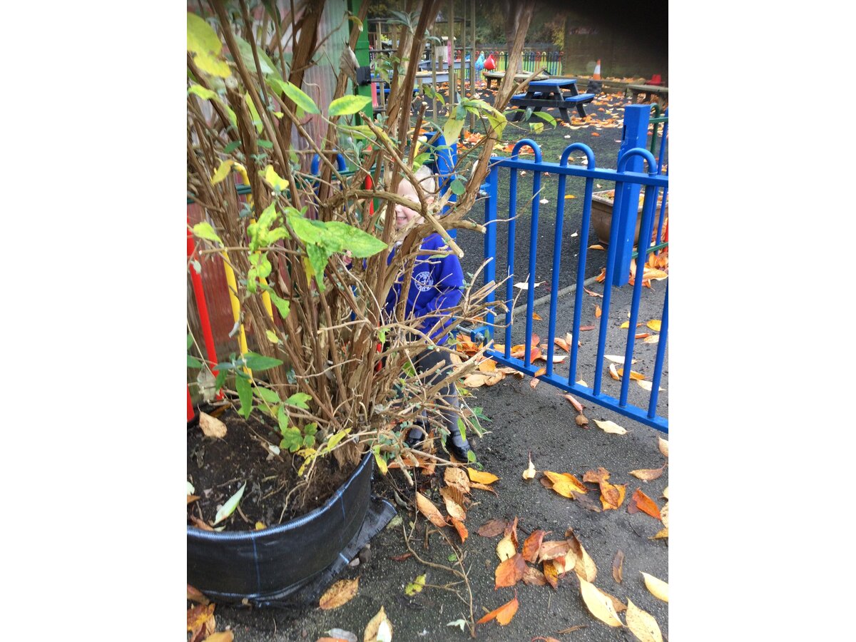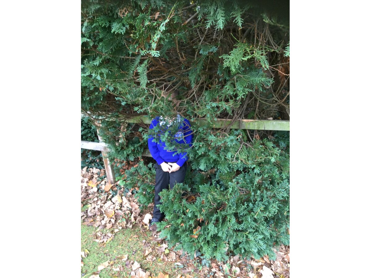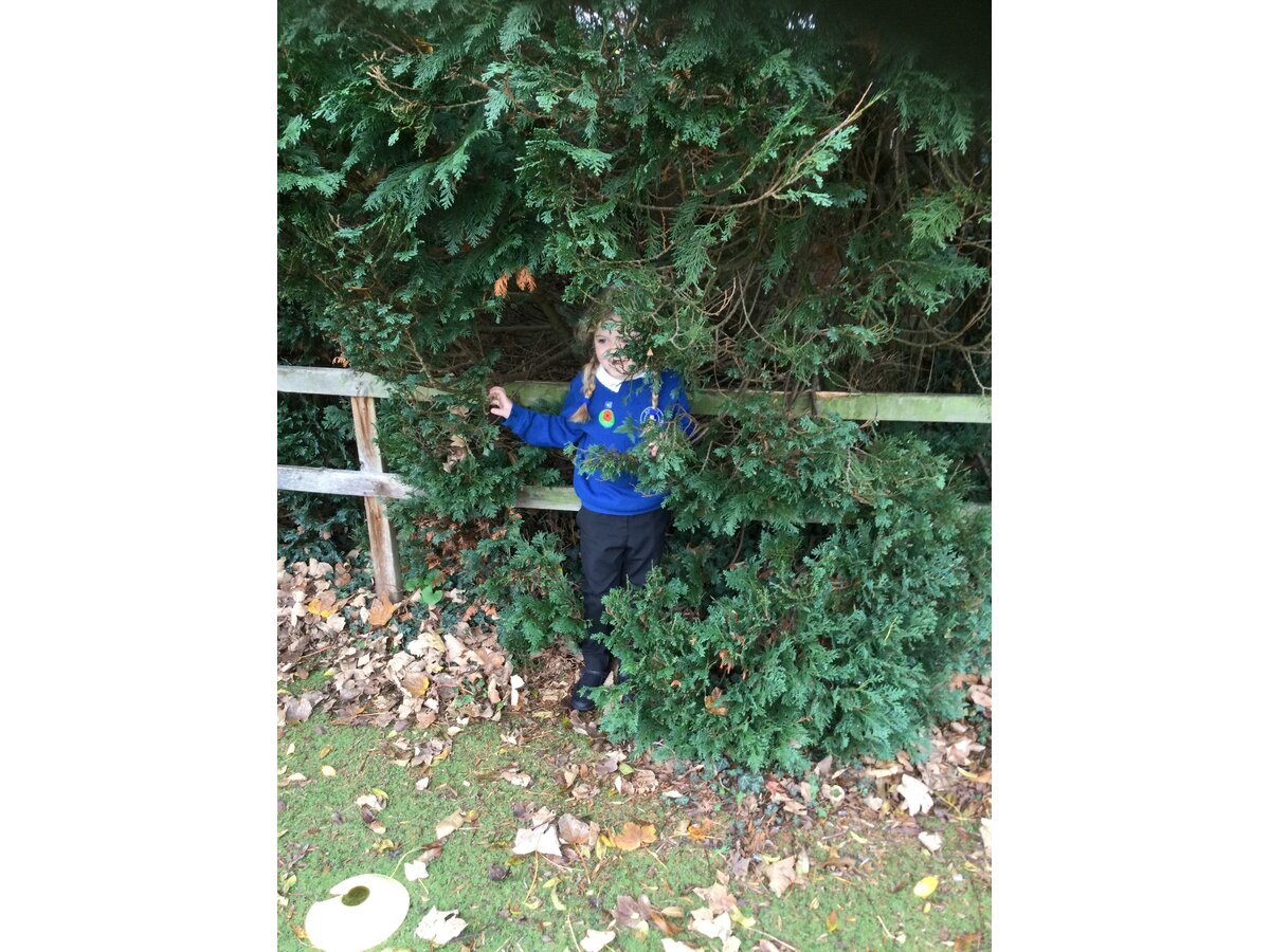 After practising, we then went outside in our small groups to play hide and seek. All the children, when Mrs Philp called their names by saying “1, 2, 3 where are you?”, used fantastic positional language to describe where they were hiding.