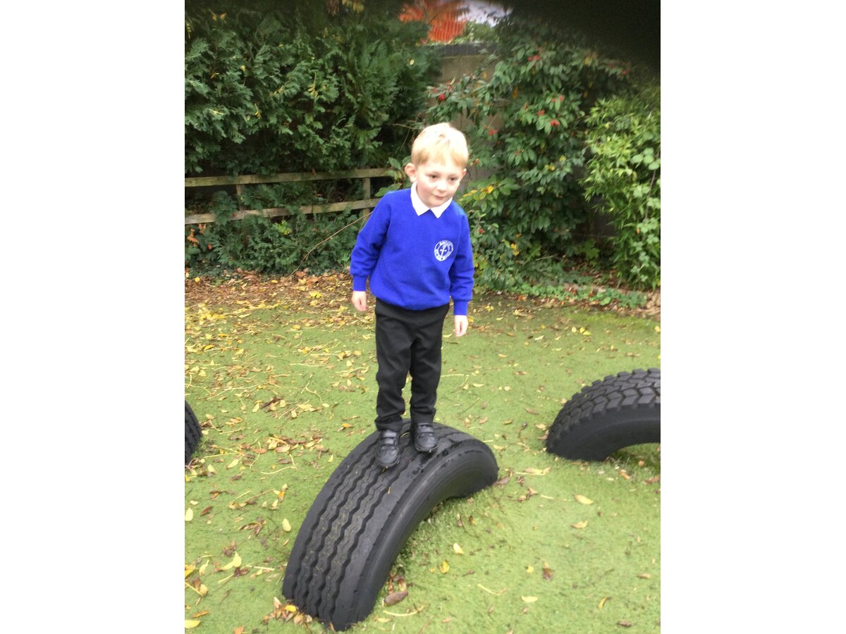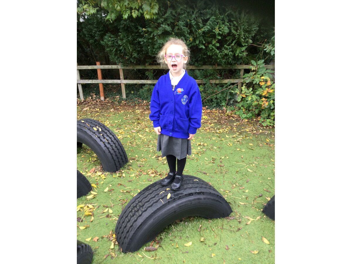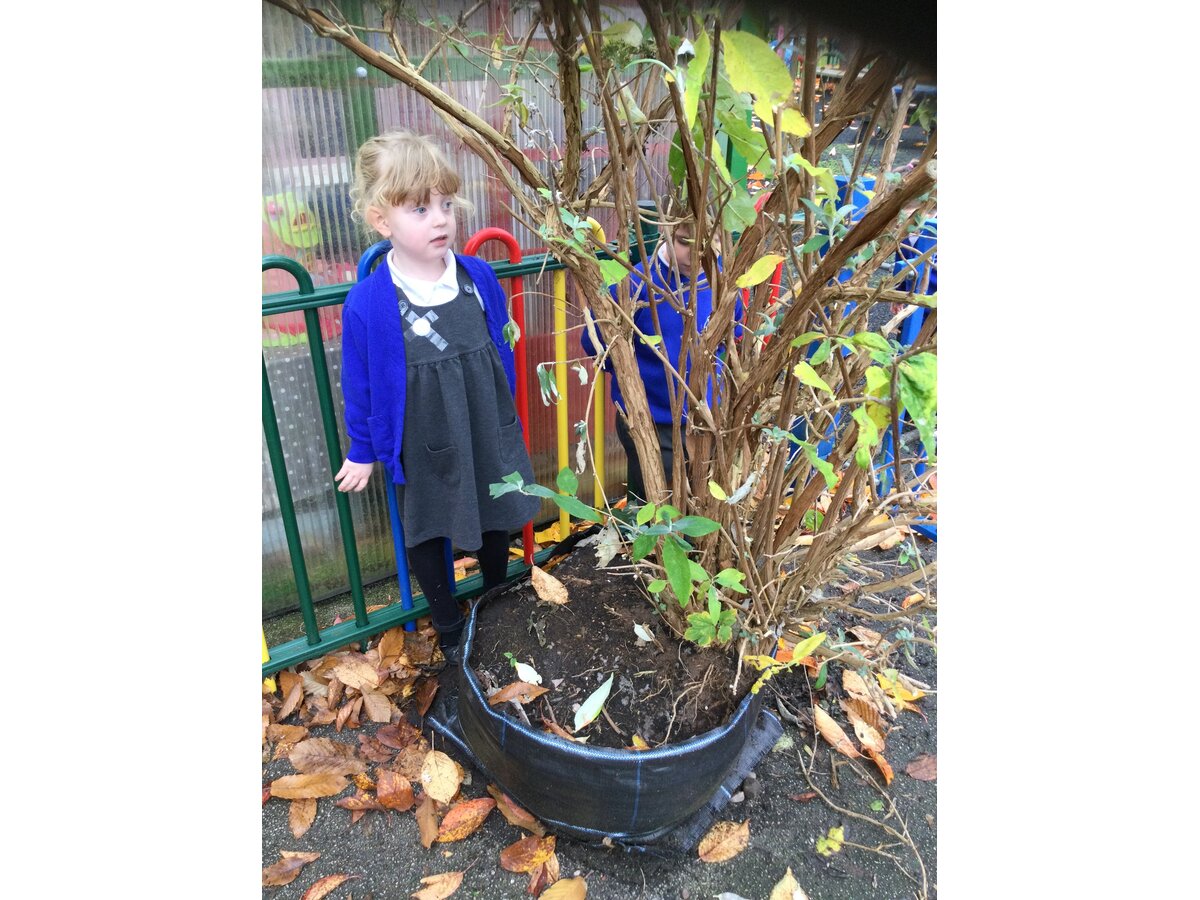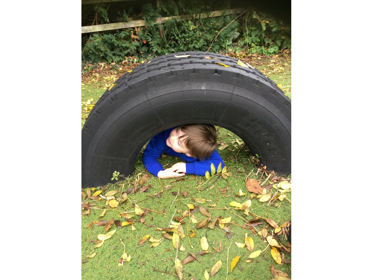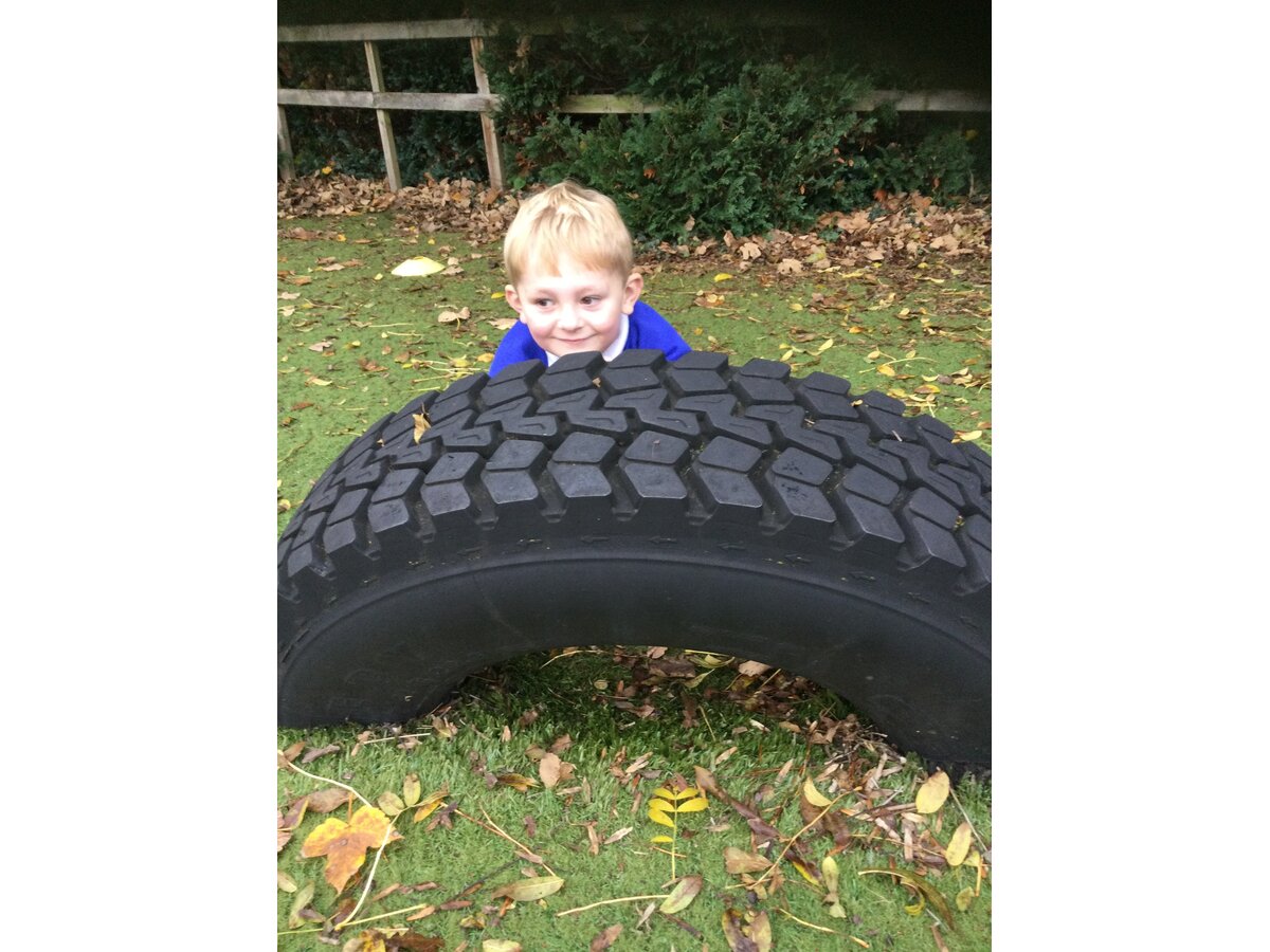 After practising, we then went outside in our small groups to play hide and seek. All the children, when Mrs Philp called their names by saying “1, 2, 3 where are you?”, used fantastic positional language to describe where they were hiding.