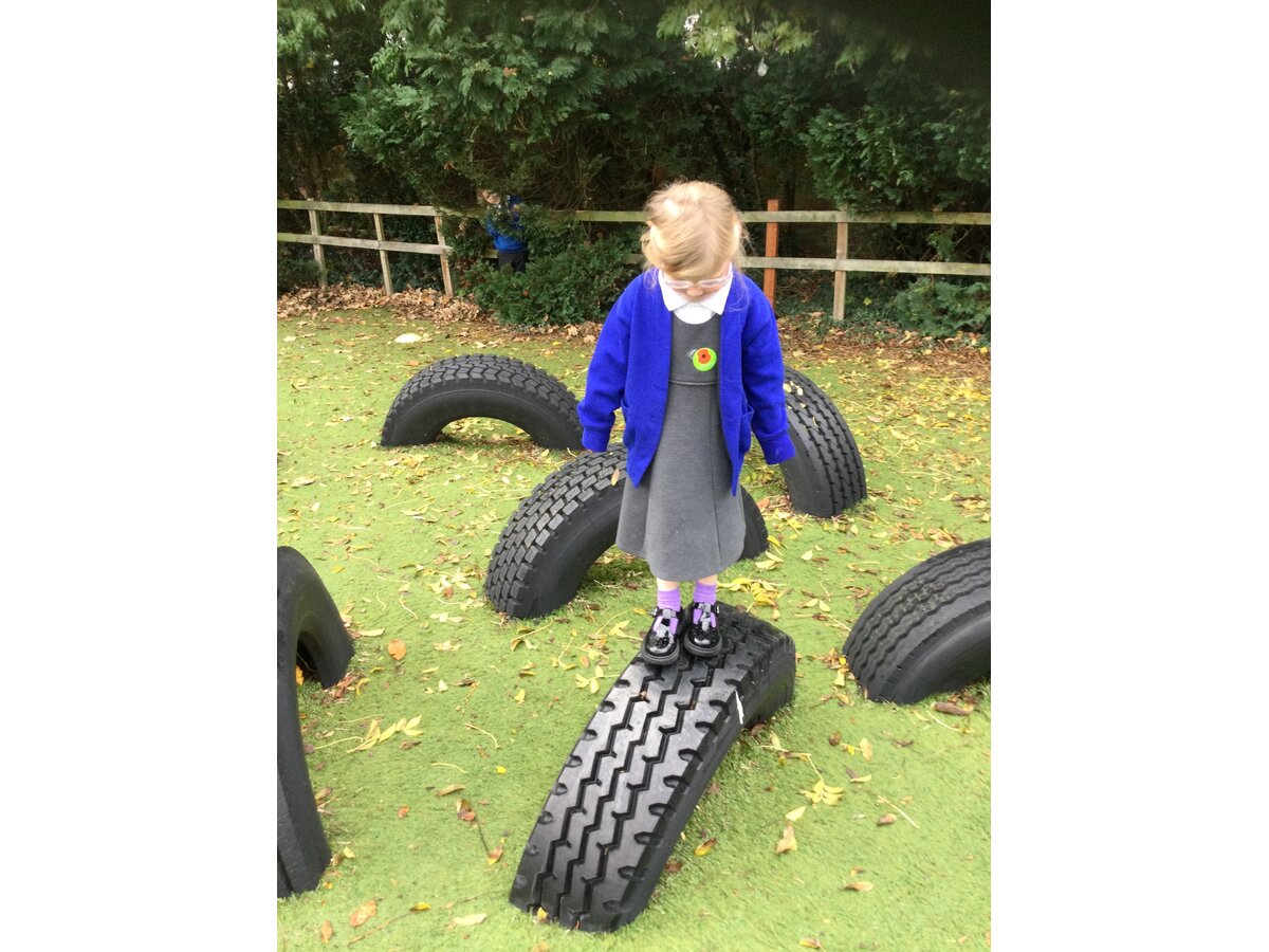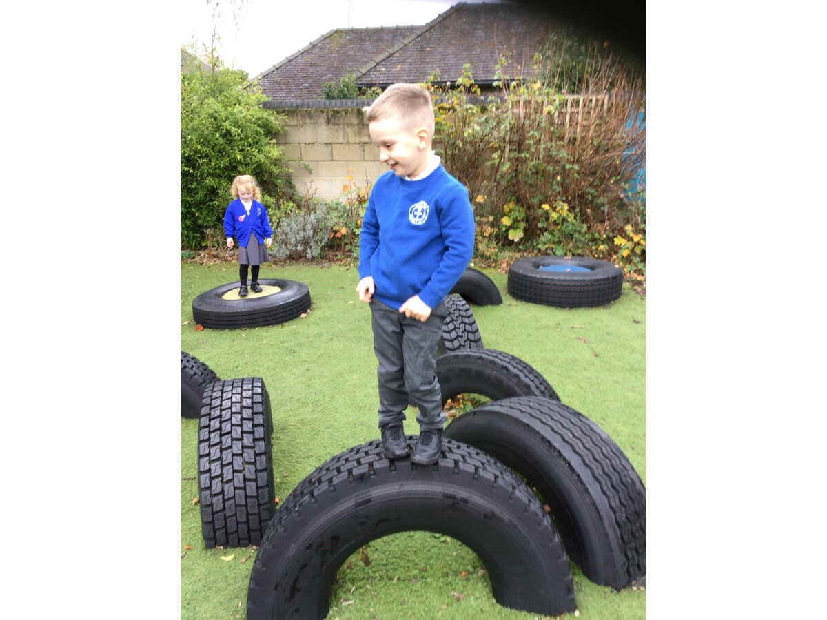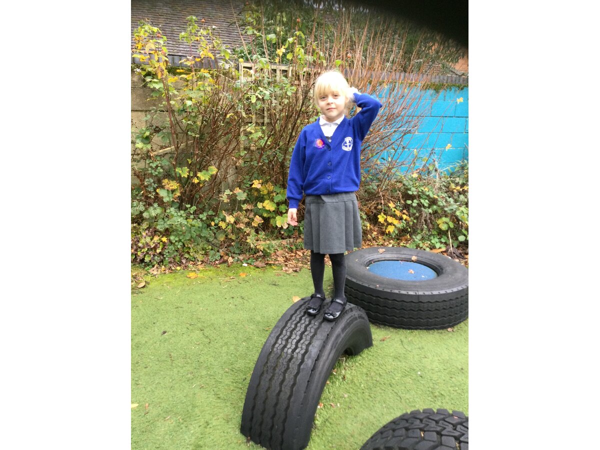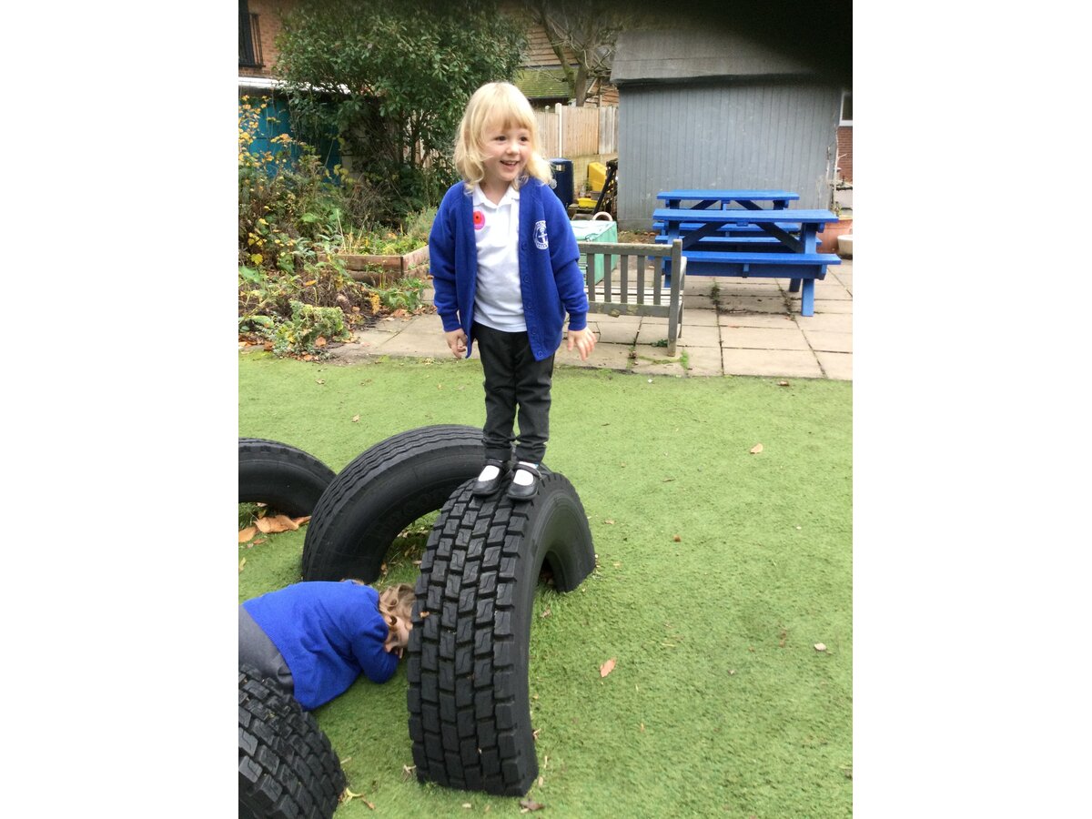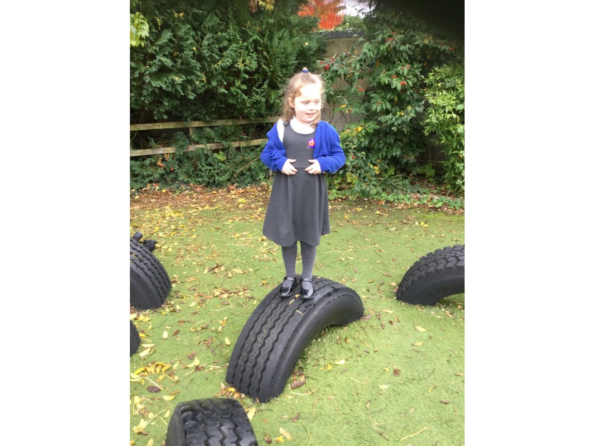 After practising, we then went outside in our small groups to play hide and seek. All the children, when Mrs Philp called their names by saying “1, 2, 3 where are you?”, used fantastic positional language to describe where they were hiding.