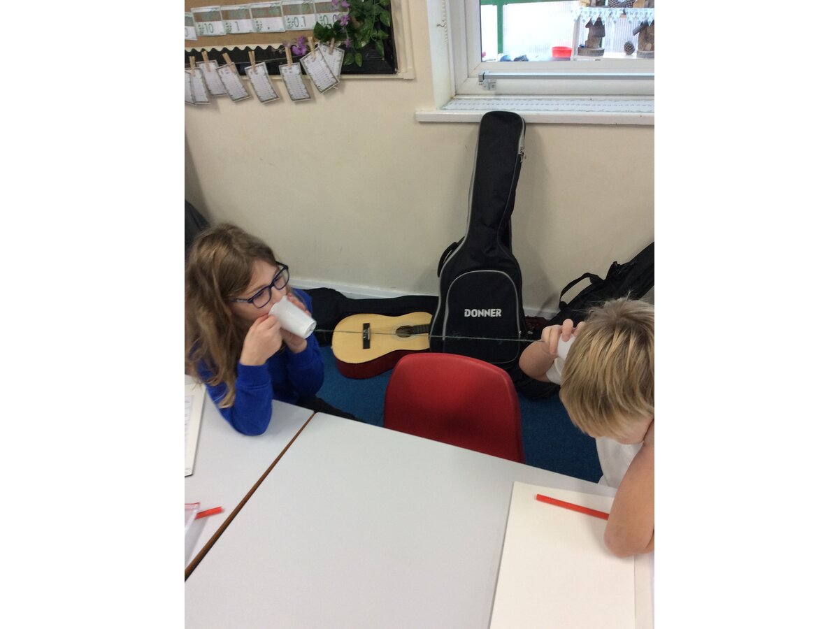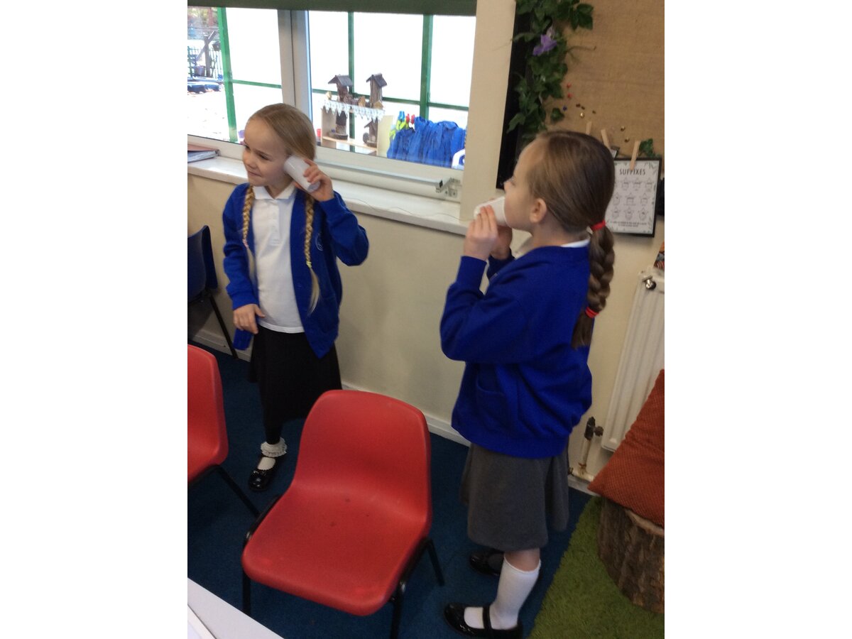 Today we started our new Design and Technology unit on British Inventors. We learnt all about how the telephone was first created by Alexander Graham Bell. We then created our own string telephones using twine, wire and string. We investigated which one was the best to transmit sound. It was so much fun that we even took them out on the playground to play with at playtime.