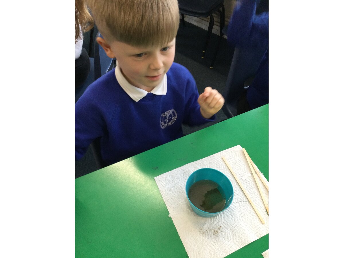 In our next experiment we investigated why soap is so important. We made our predictions first and discussed these with the rest of the class.