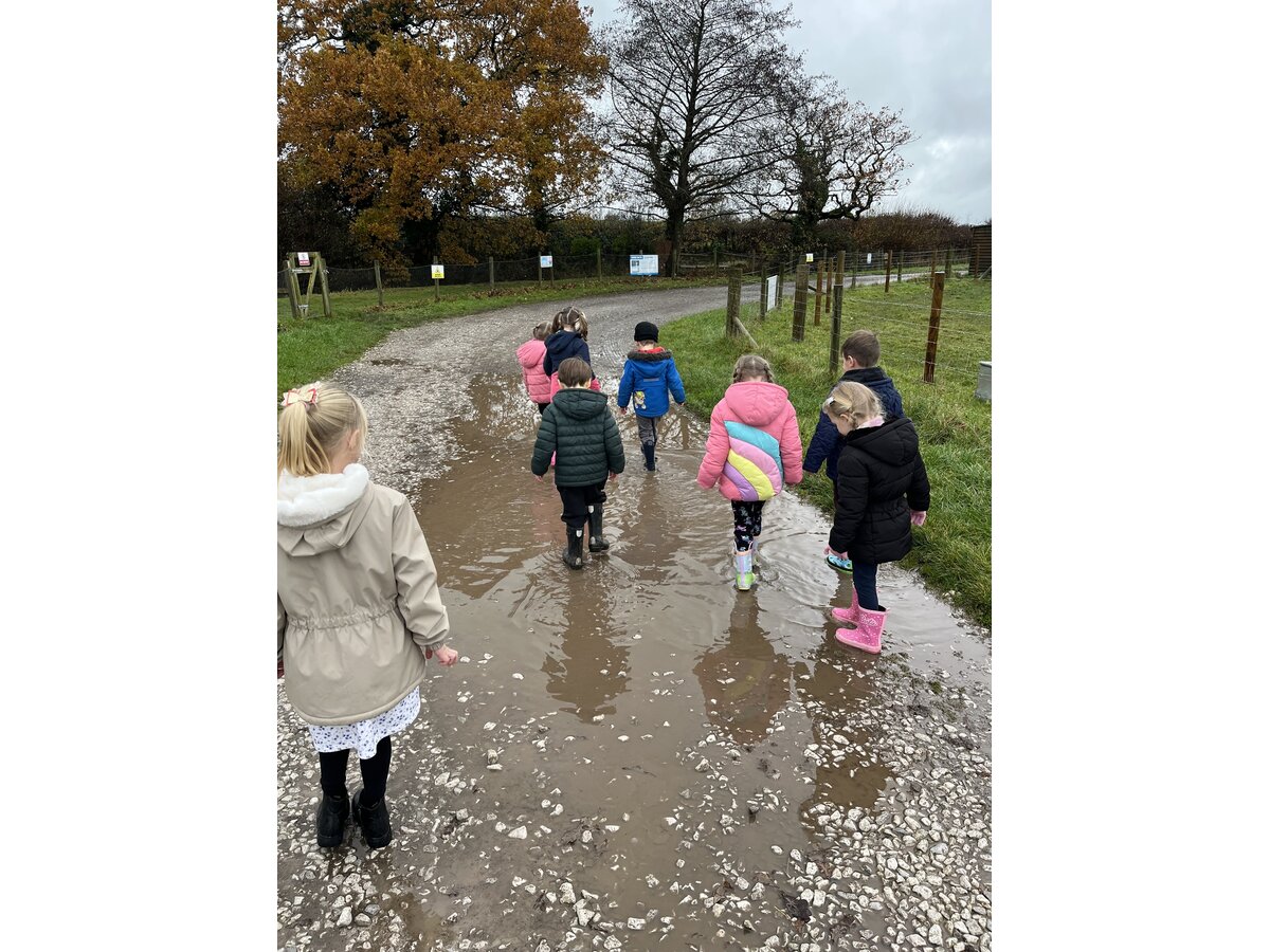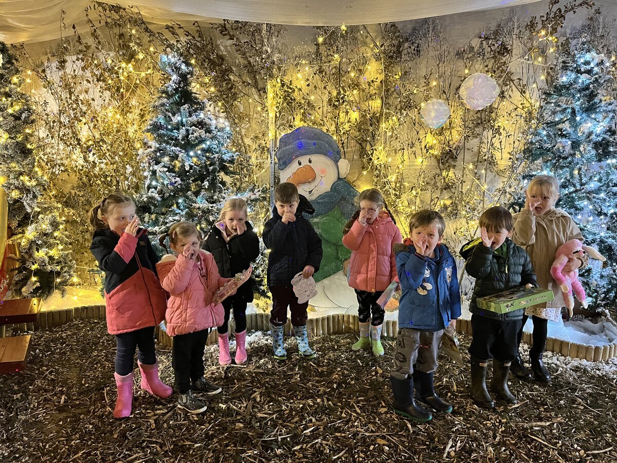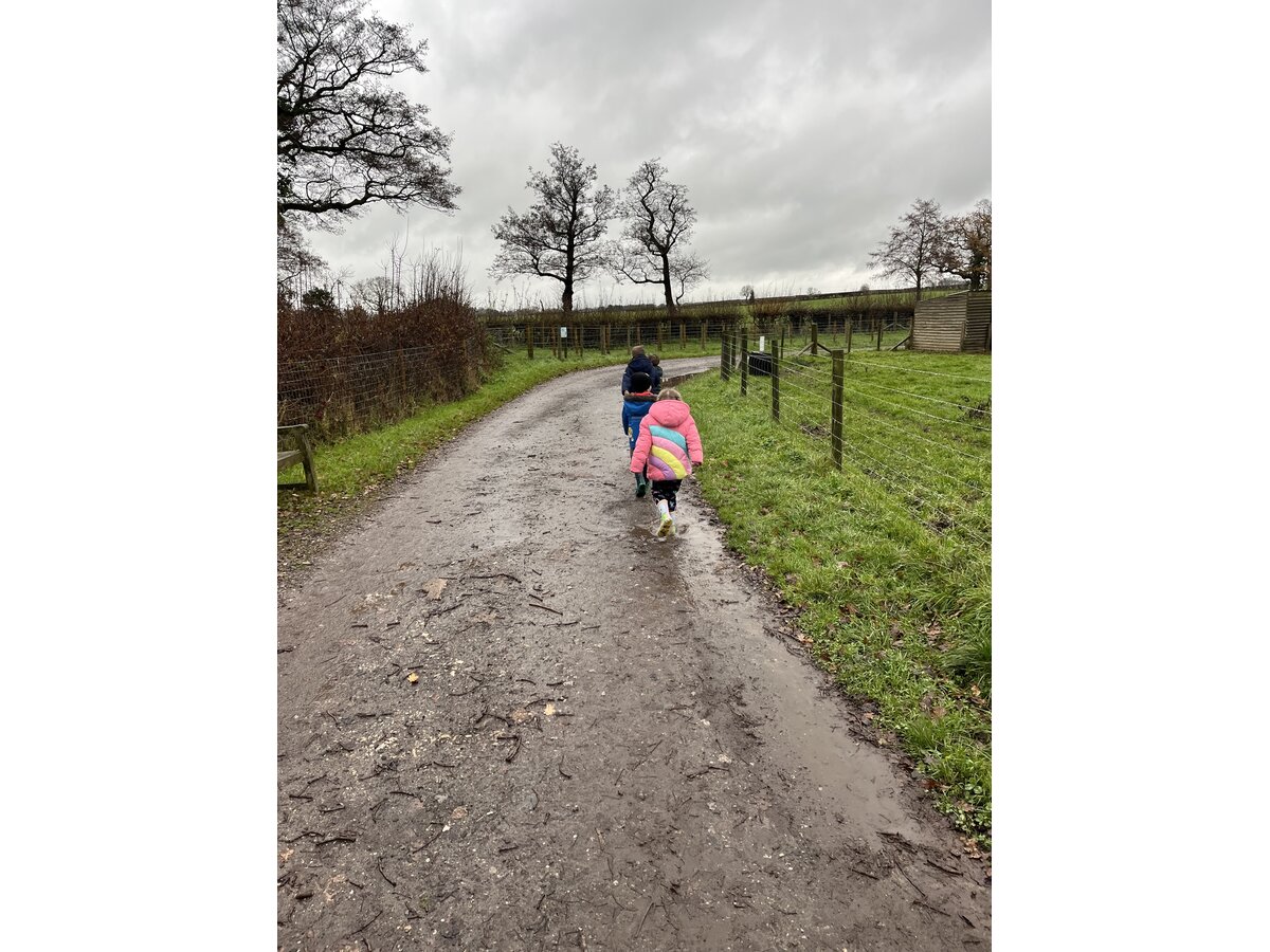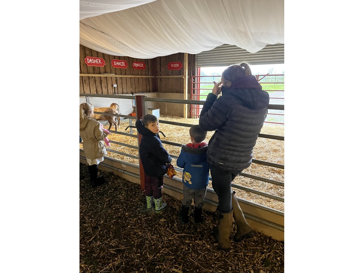 After our visit to see Father Christmas and his helpers, the children enjoyed exploring the indoor play area and having their picnic lunch. We were incredibly lucky with the weather after lunch and went on a fabulous (rain free) and animal filled walk around the farm and all enjoyed a little bit of splashing in the puddles!