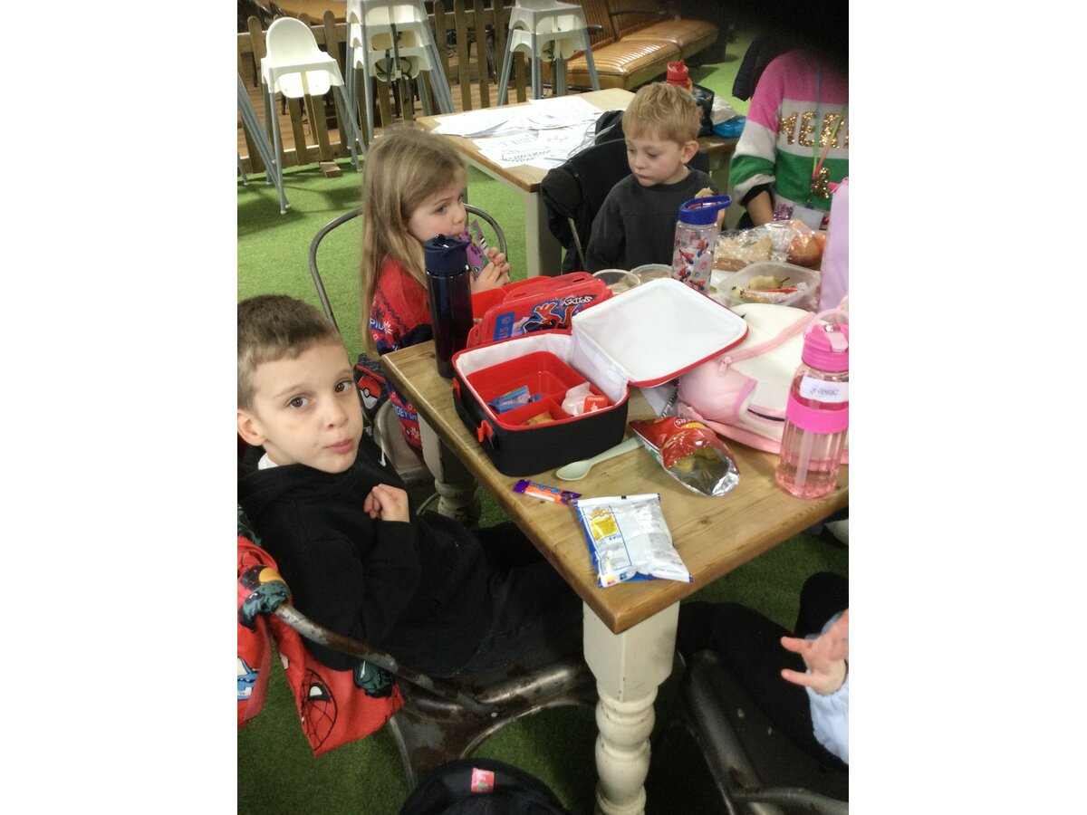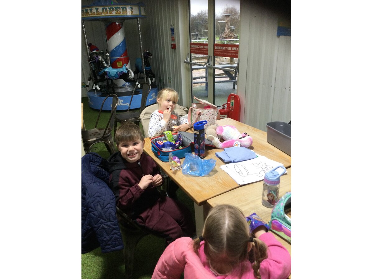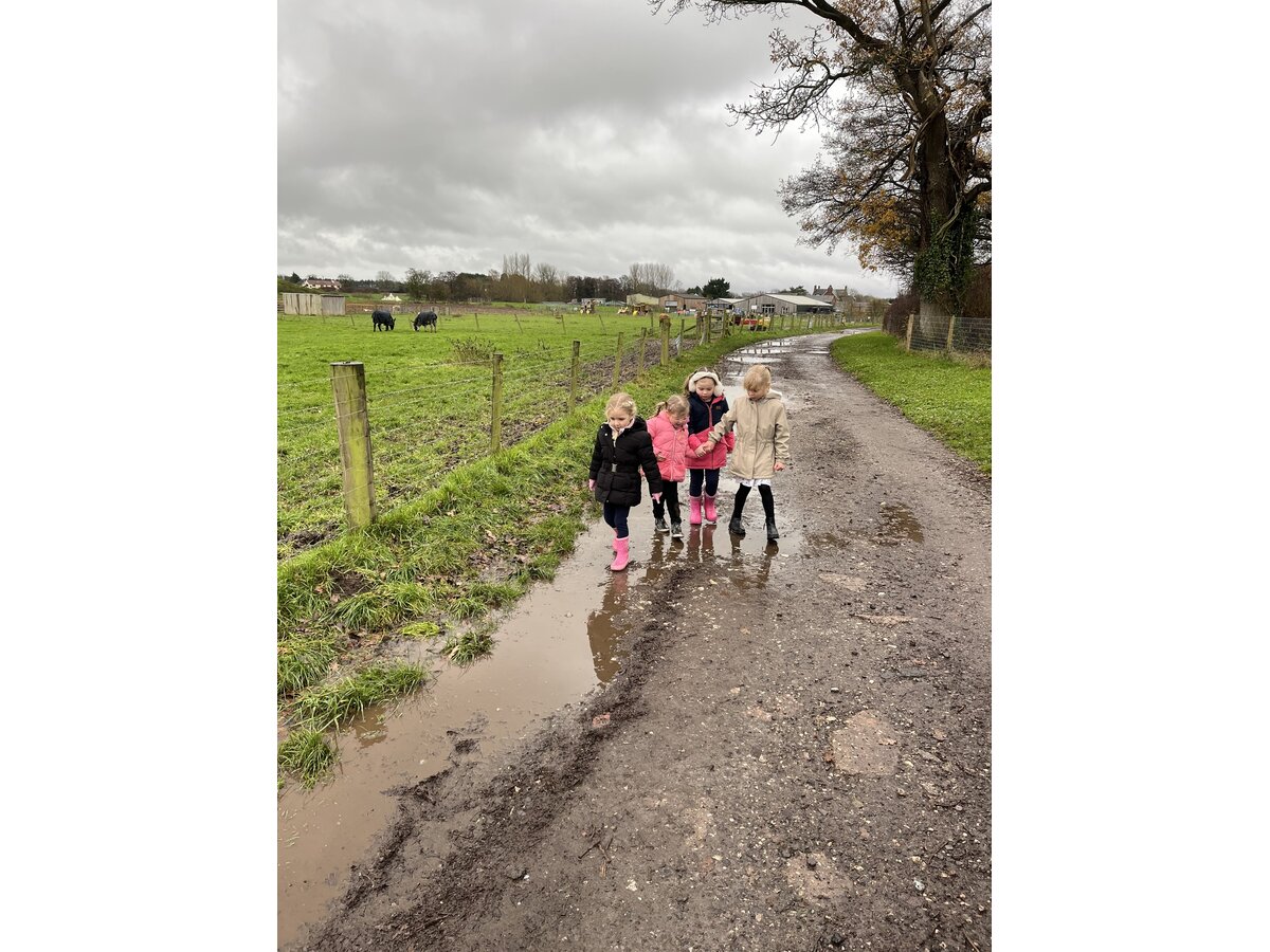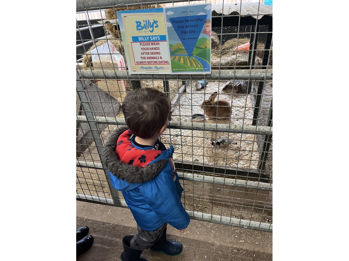After our visit to see Father Christmas and his helpers, the children enjoyed exploring the indoor play area and having their picnic lunch. We were incredibly lucky with the weather after lunch and went on a fabulous (rain free) and animal filled walk around the farm and all enjoyed a little bit of splashing in the puddles!