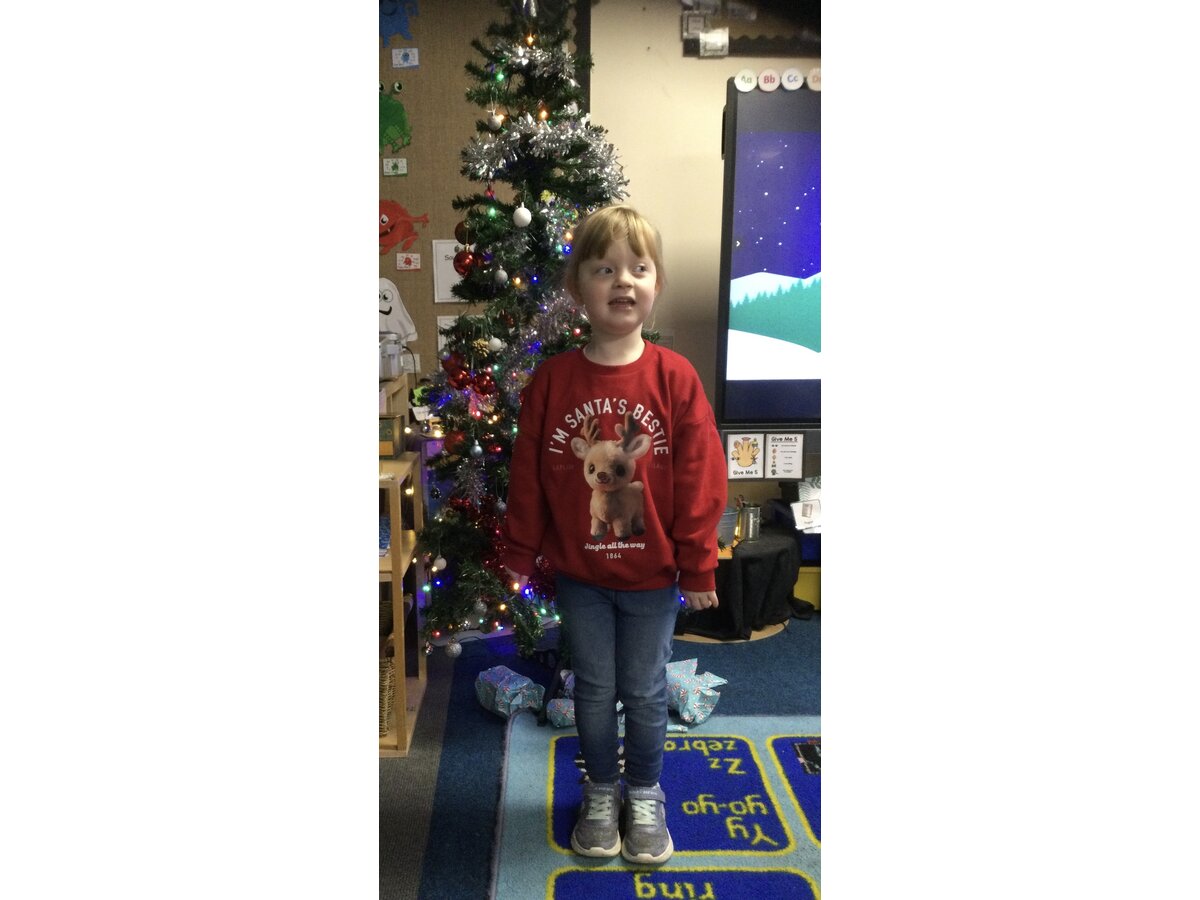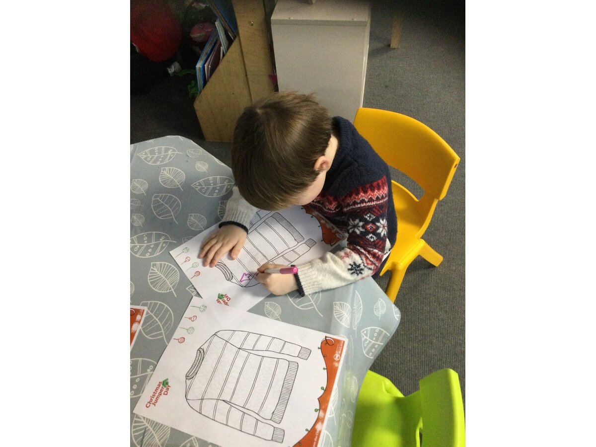 Class 1 have enjoyed wearing and showing their amazing Christmas jumpers and engaging with lots of different Christmas jumper themed activities in our provision. We’ve have some fantastic Christmas jumpers designed for our Class elf, Sparkles at the creative, writing and funky finger tables and all enjoyed using our counting and number formation skills playing Christmas Jumper I Spy.