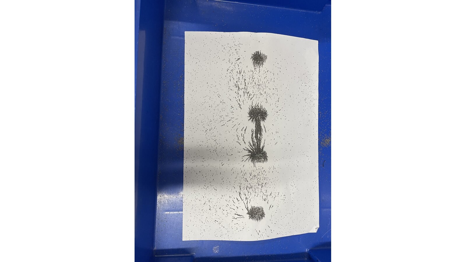 We have been investigating magnetic fields in Science. We placed magnets under a piece of paper and then sprinkled some iron filings onto the paper. The filings created patterns when they attracted or repelled. This was lots of fun to see and we know much more about magnetic fields now.