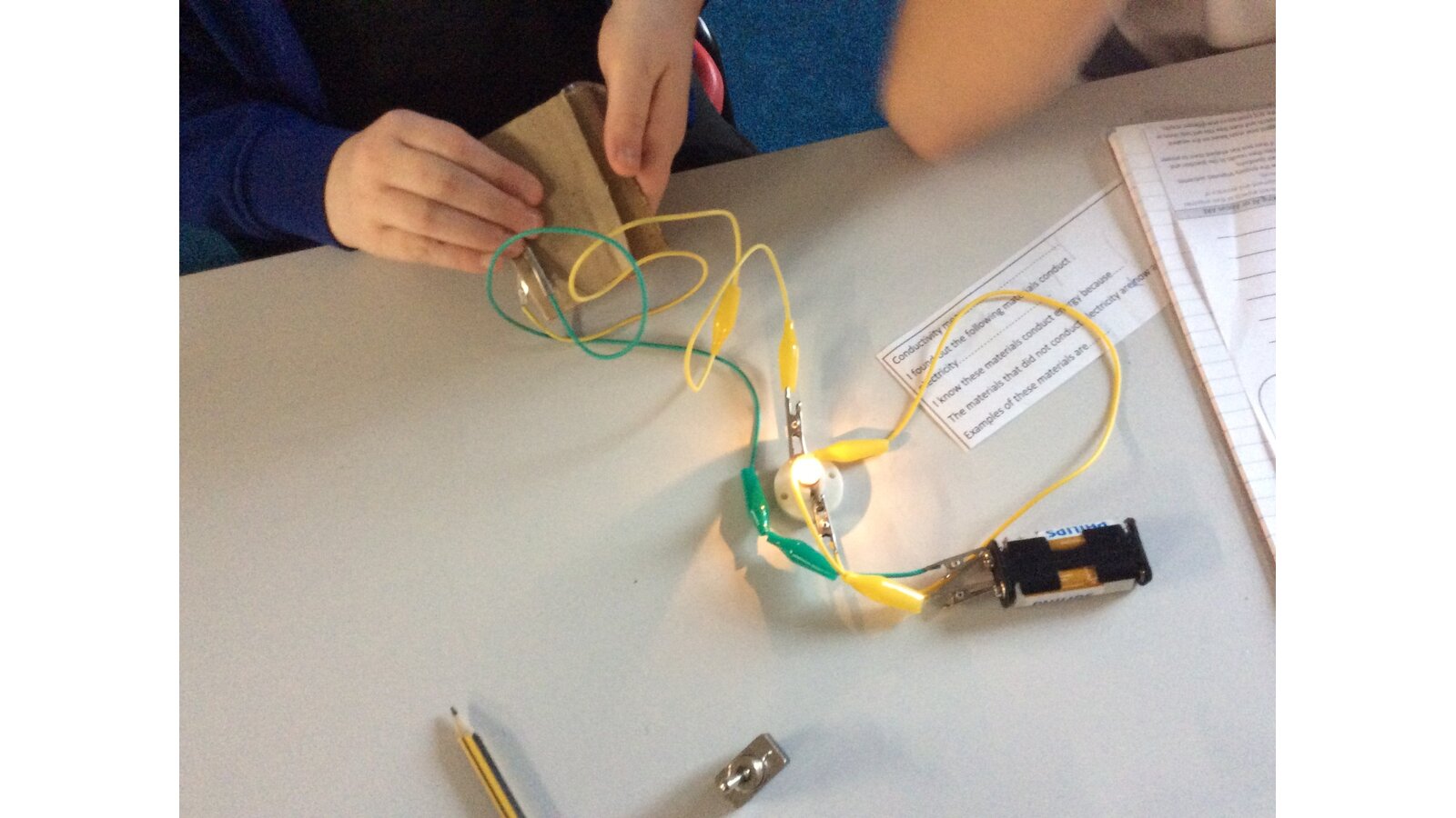 In Science, we have been learning about insulators and conductors. We investigated materials in a circuit, such as wood, copper, foil and glass. We then created our own switches using materials we knew were conductors. We were really pleased when the bulb lit up.