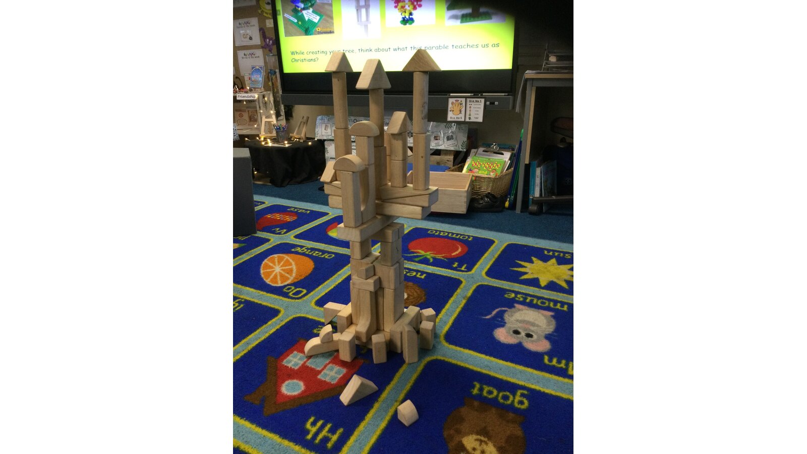 We shared the parable of the Mustard Seed and talked about it’s important message and then worked together in small groups to create our own mustard tree using different construction resources.
