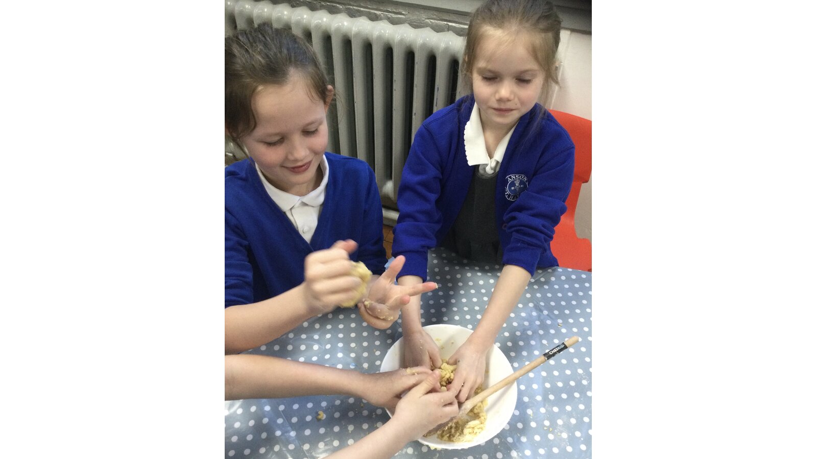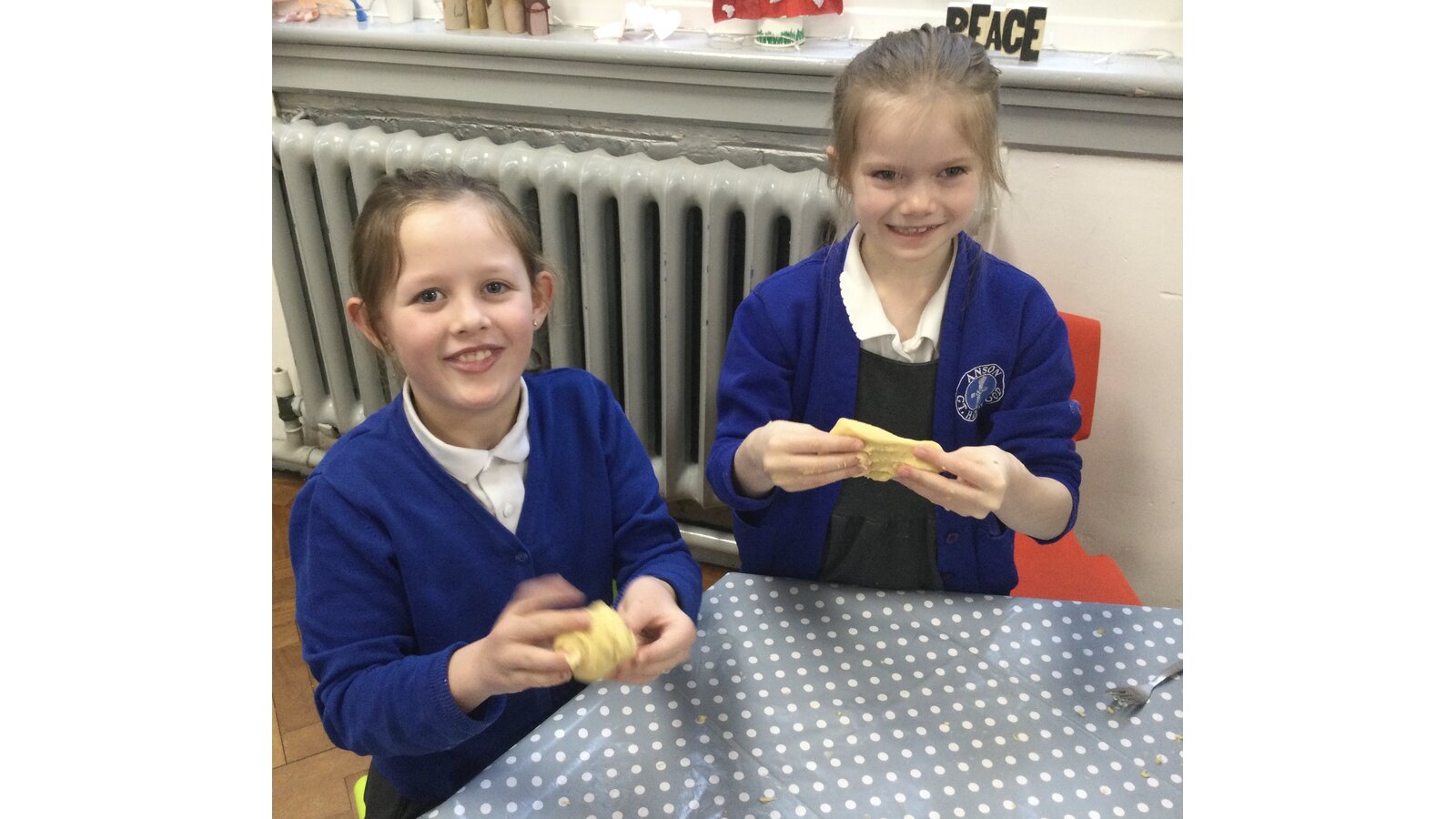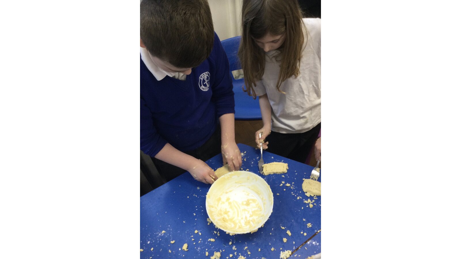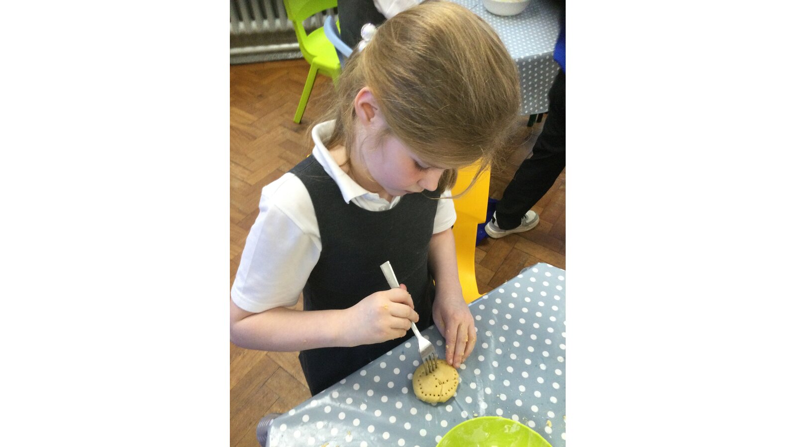 Today we used ingredients very similar to what the Anglo Saxons would have had available to bake and decorate shortbread. The only flavouring was the honey and the only decoration was using a fork to make patterns. The Anglo Saxons ate very simple foods, things they could hunt or forage for but these shortbreads tasted delicious!