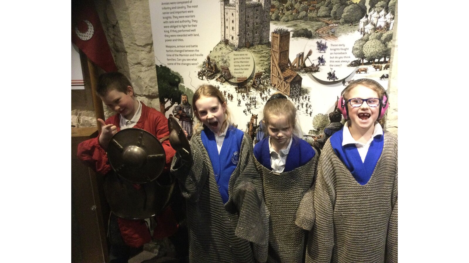 We have had a terrific time at Tamworth Castle. We had a tour of the castle and a close view of the Staffordshire Hoard. We saw how the castle had changed over time as we wandered through the rooms. We dressed as Saxon warriors and imagined an enemy tribe approaching as we took in the view from the top of the tower.