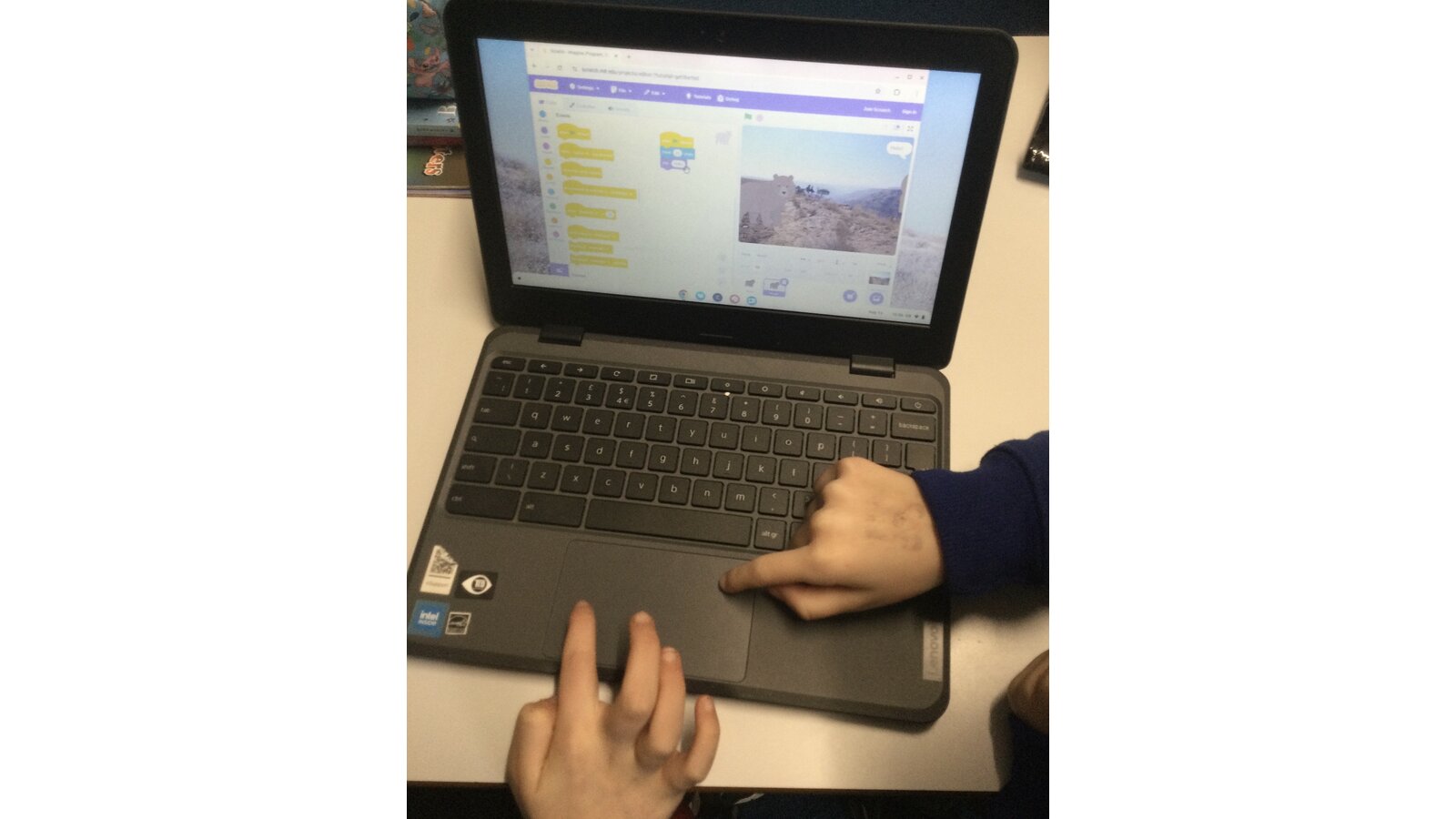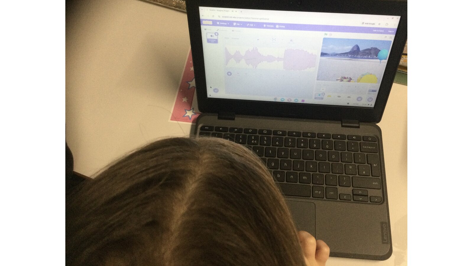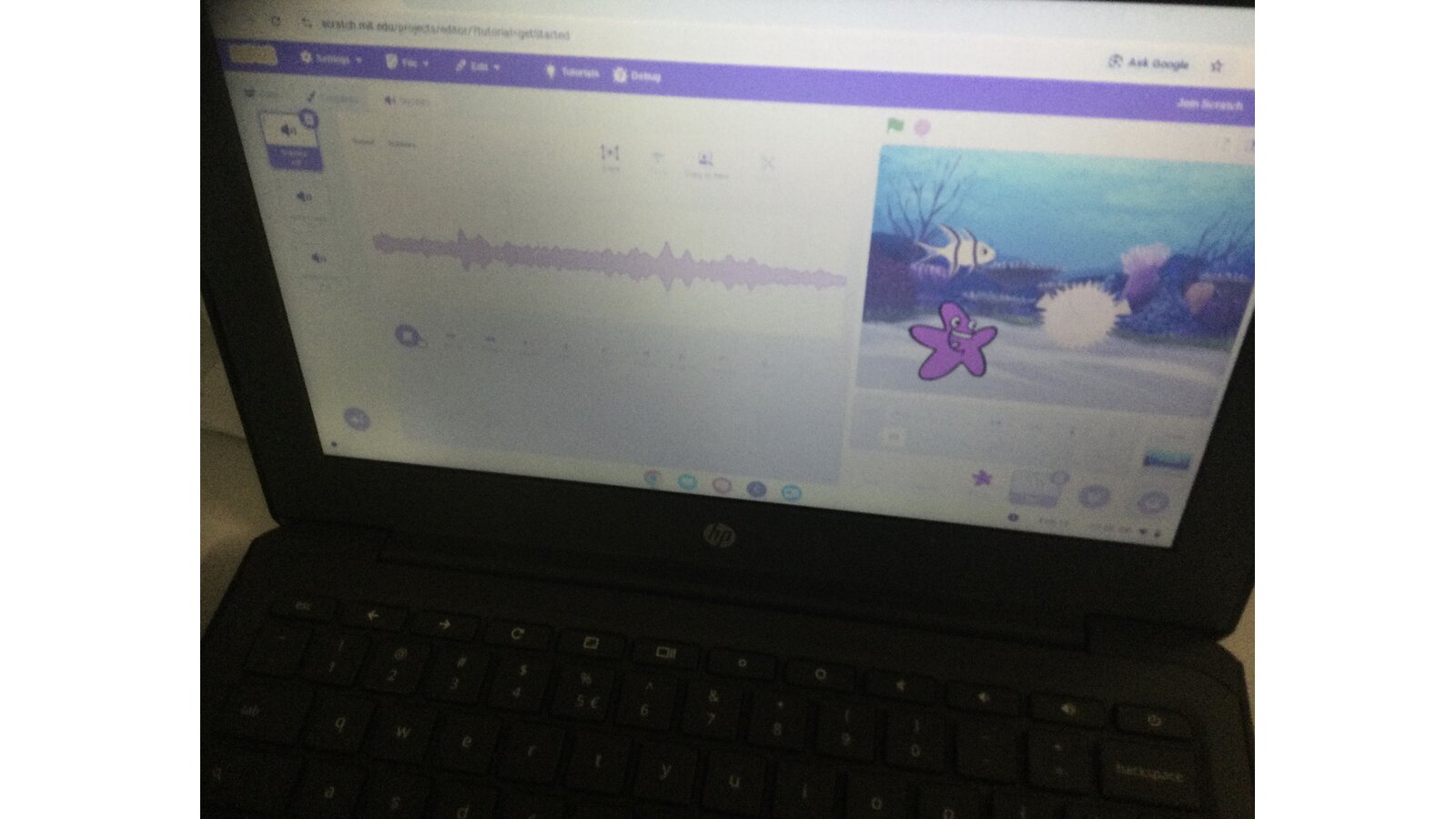 During computing time, we continued our work with ‘Scratch’. Today we sequenced sounds to match the movements of our characters. We added in sounds like the crowd cheering when a footballer scored a goal and waves and bubbles to match an under the sea scene.