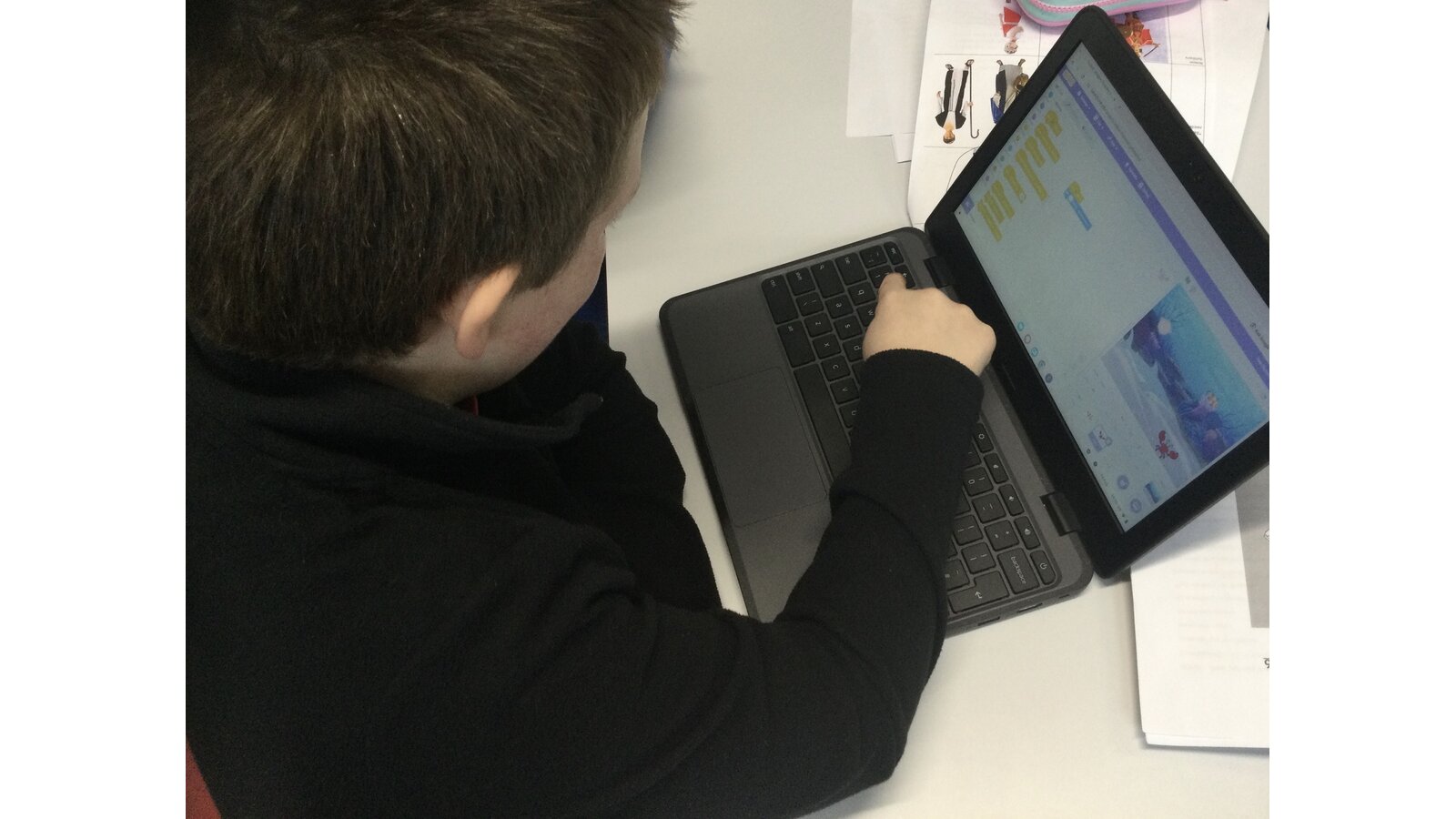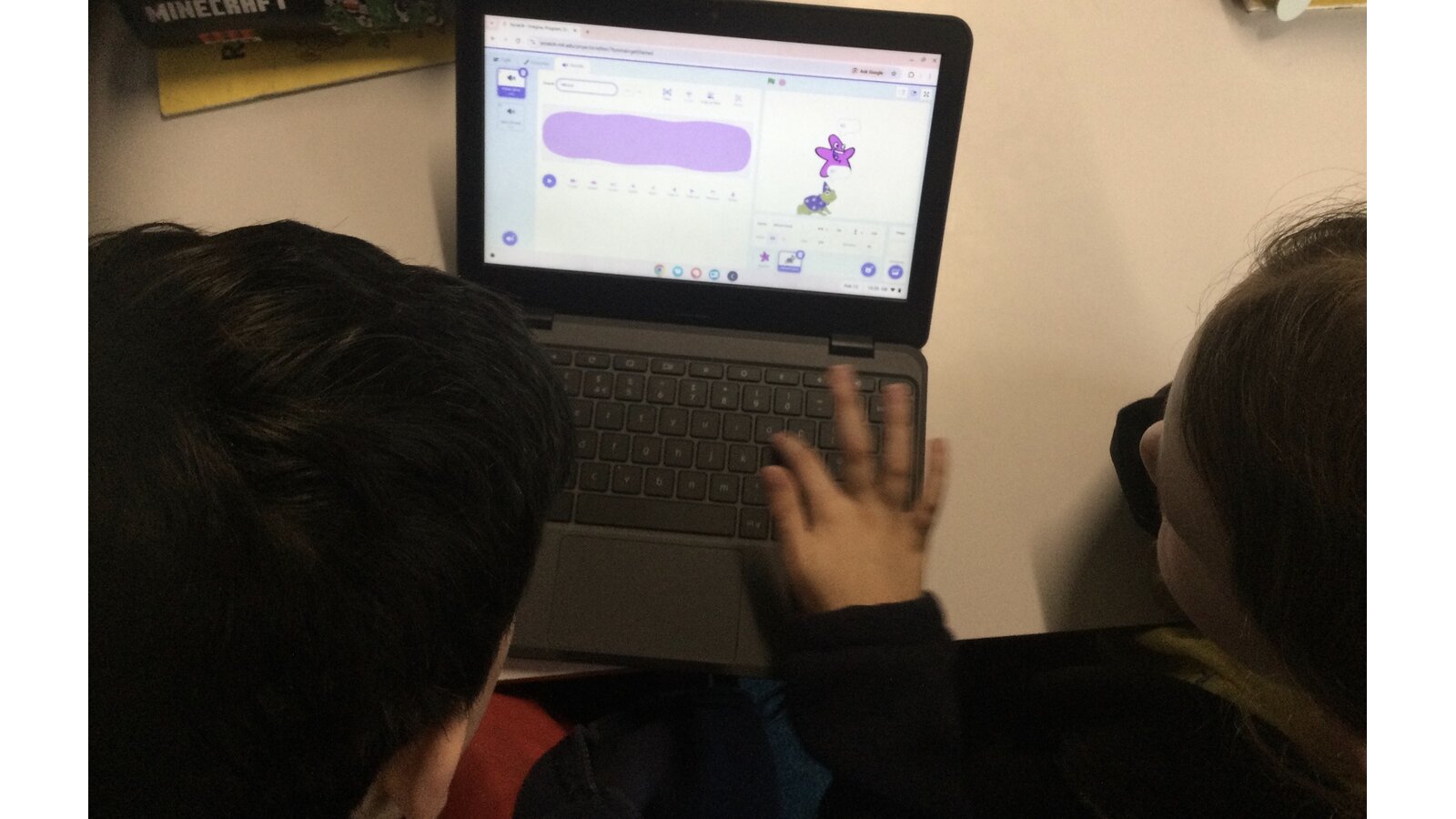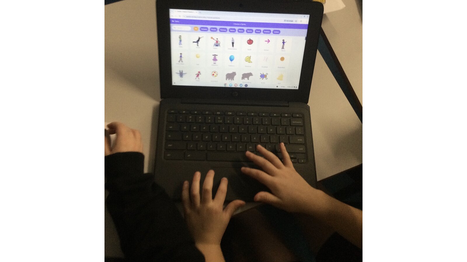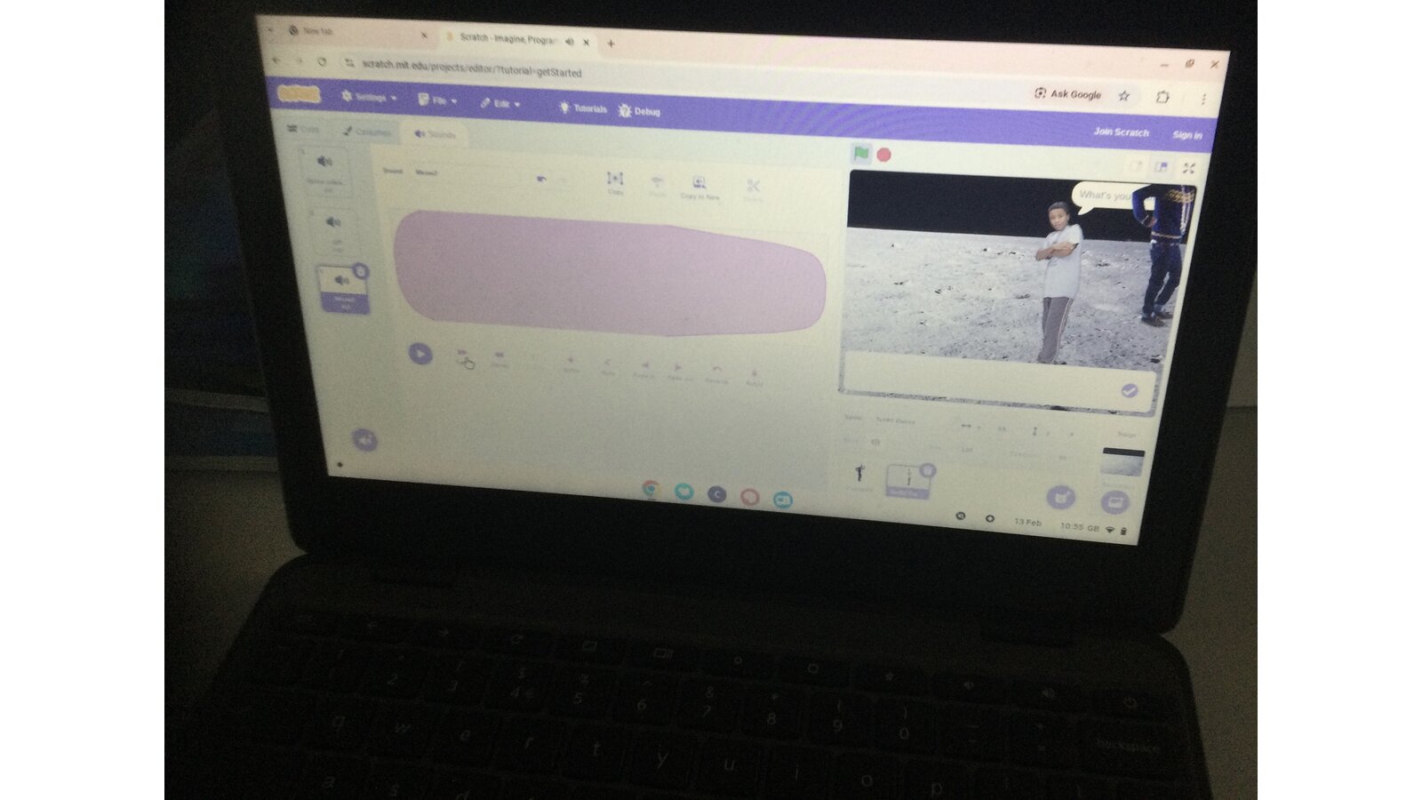 During computing time, we continued our work with ‘Scratch’. Today we sequenced sounds to match the movements of our characters. We added in sounds like the crowd cheering when a footballer scored a goal and waves and bubbles to match an under the sea scene.